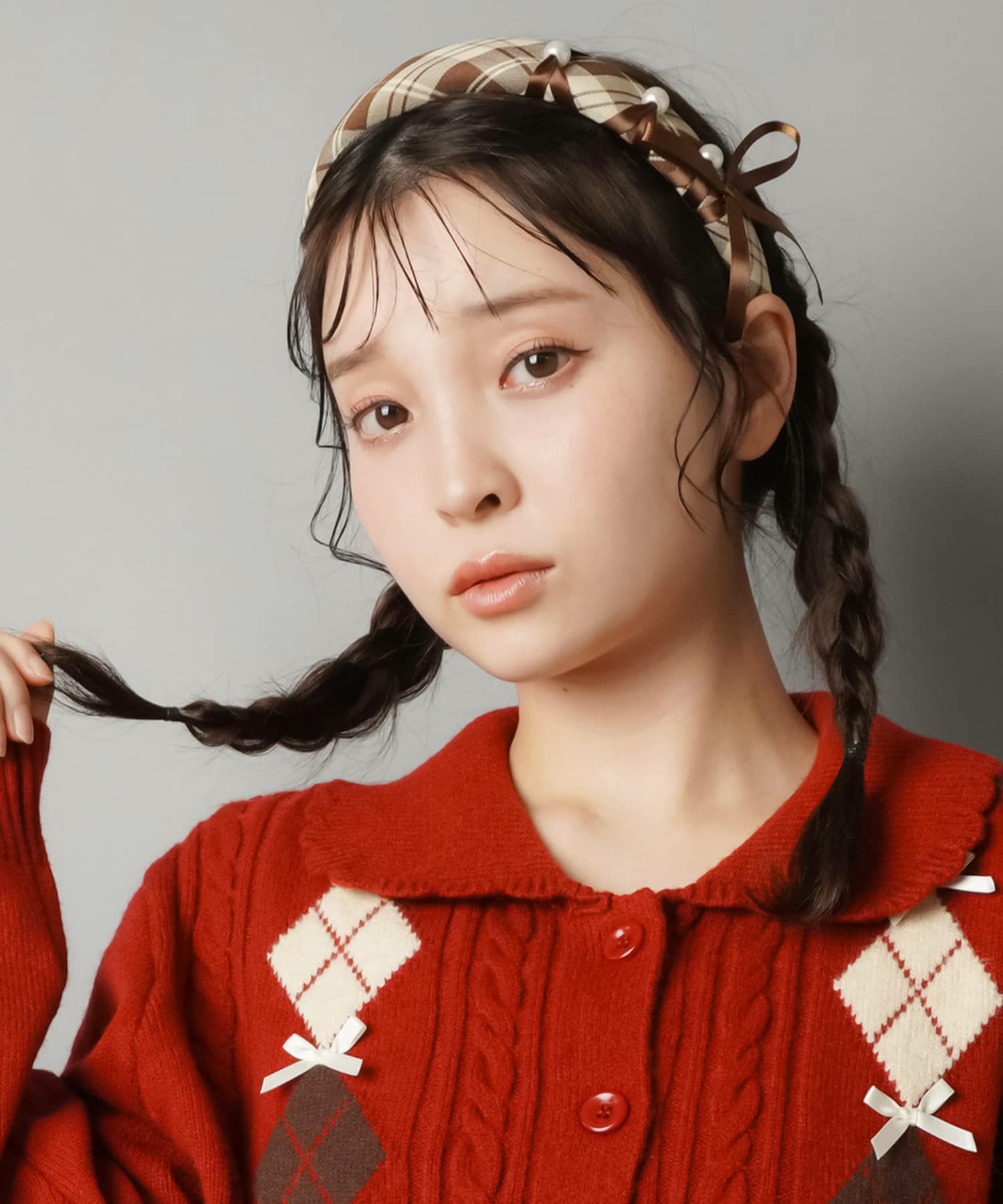 【38%OFF】チェックカチューシャ/リボンパール