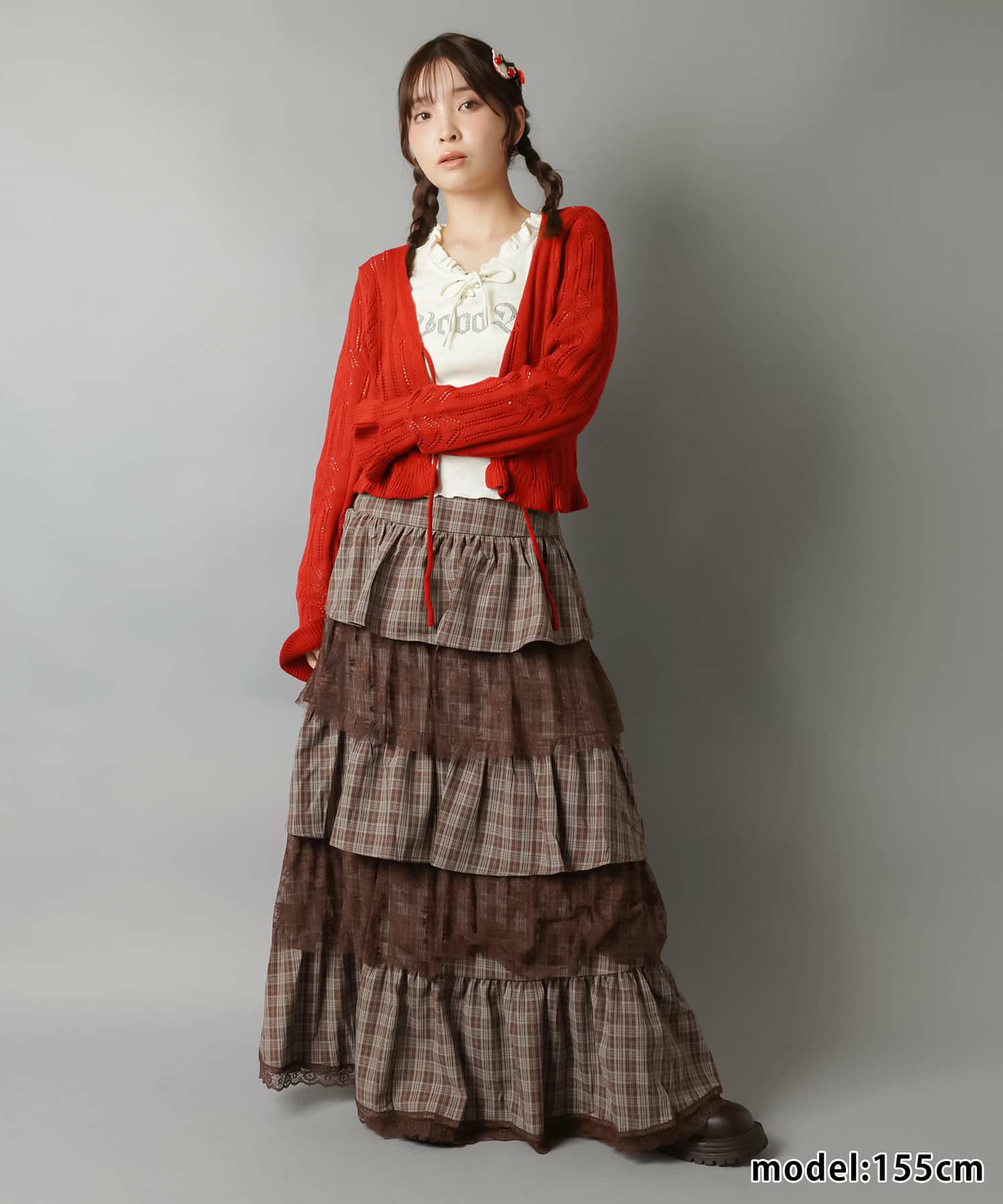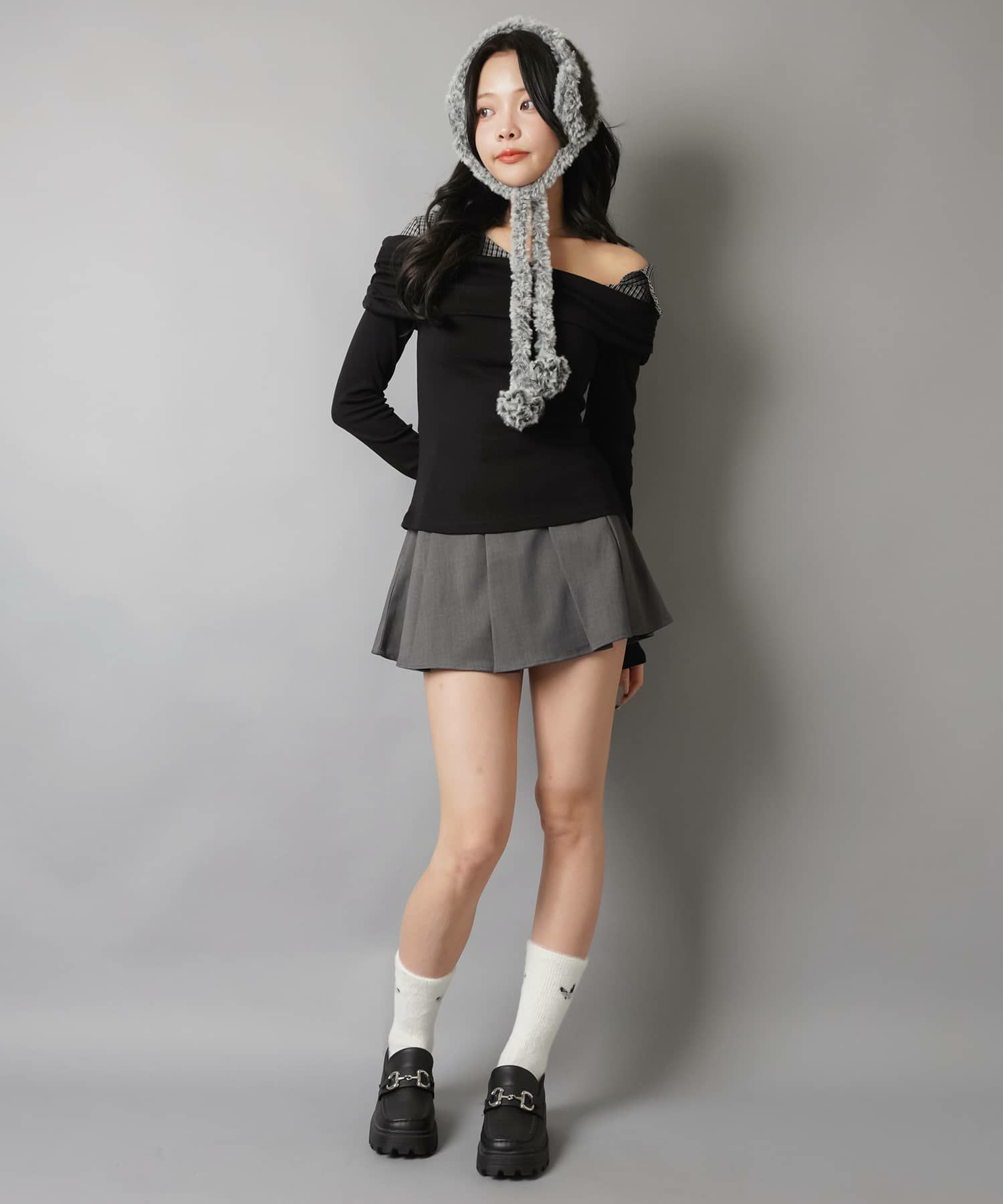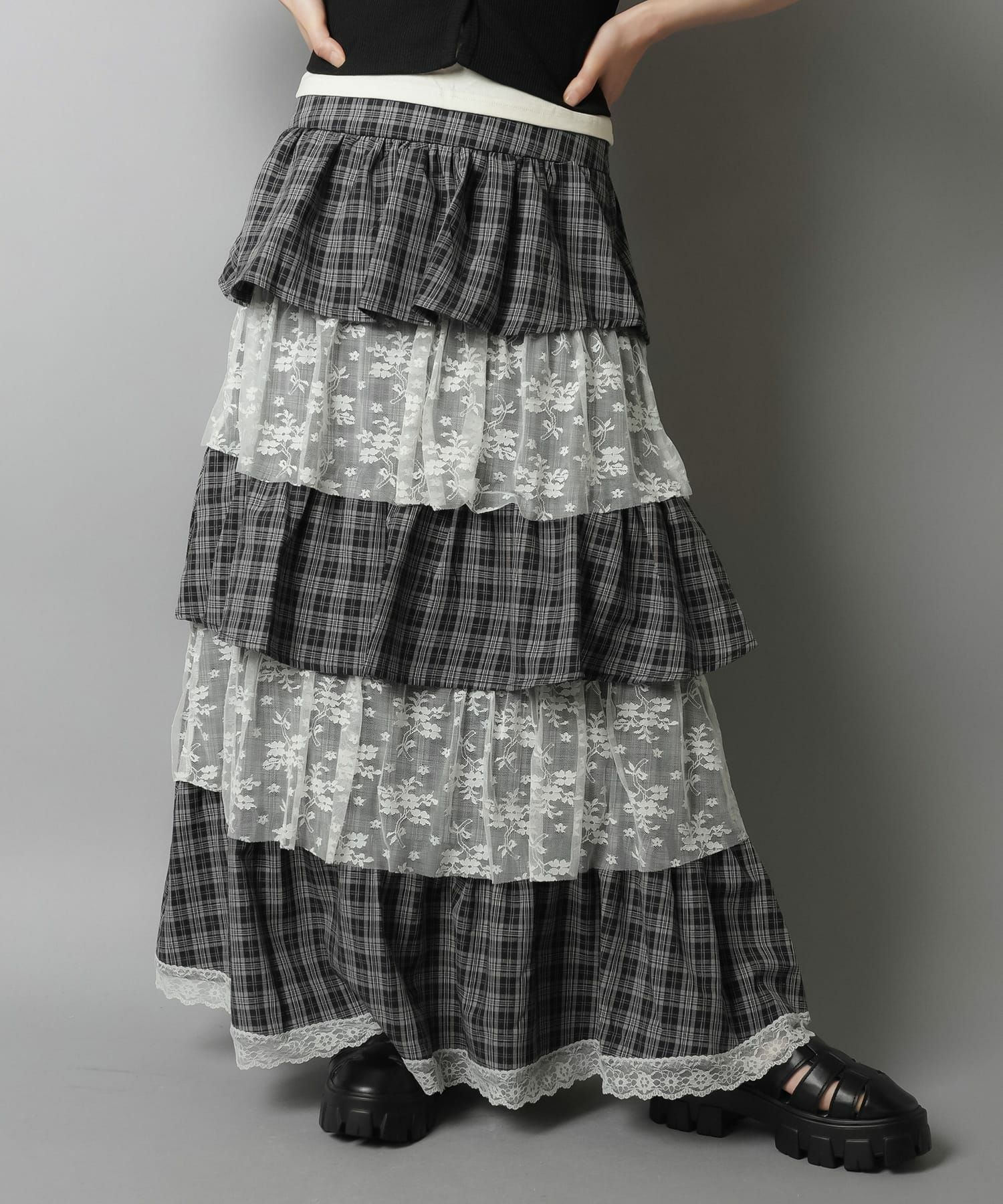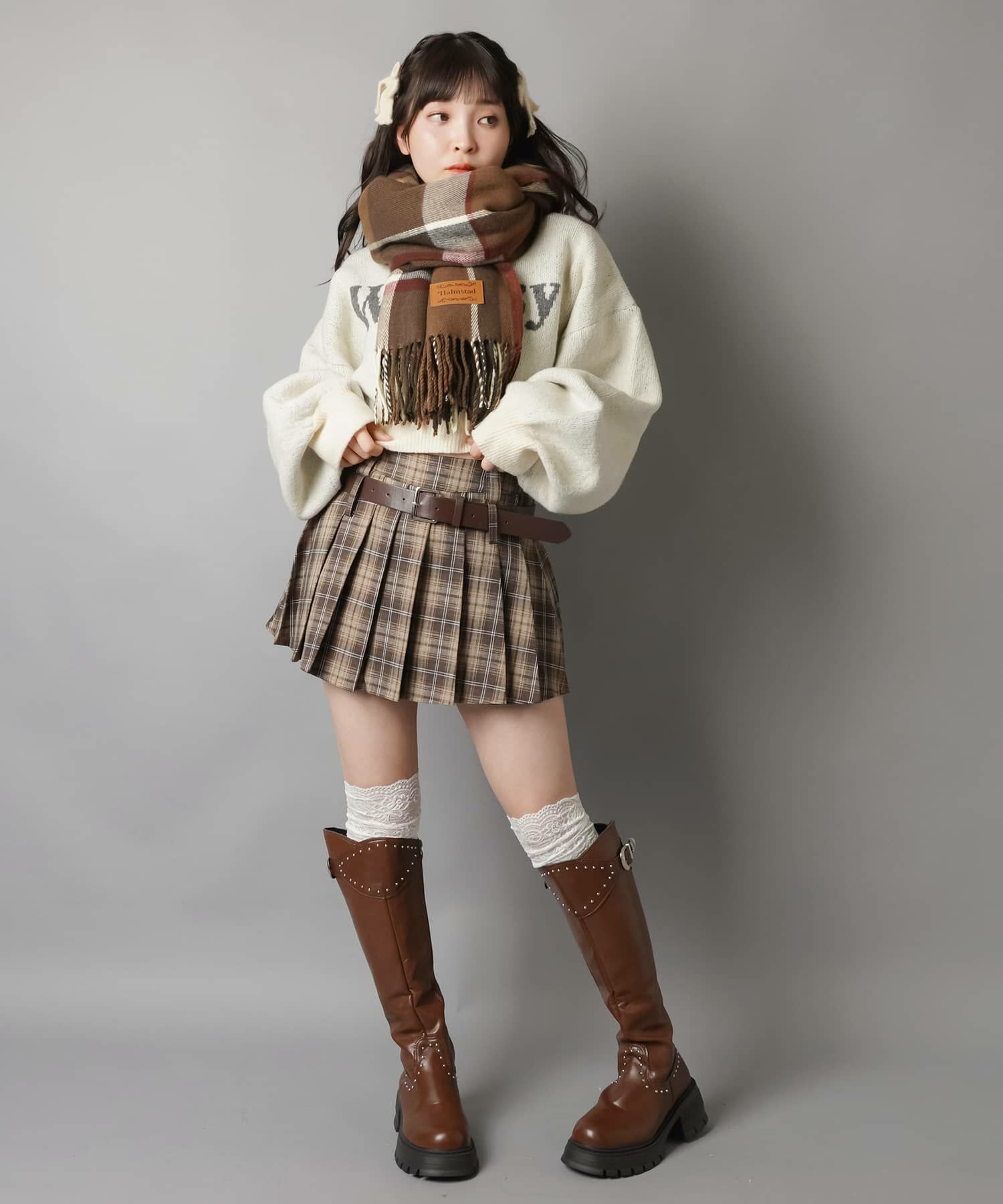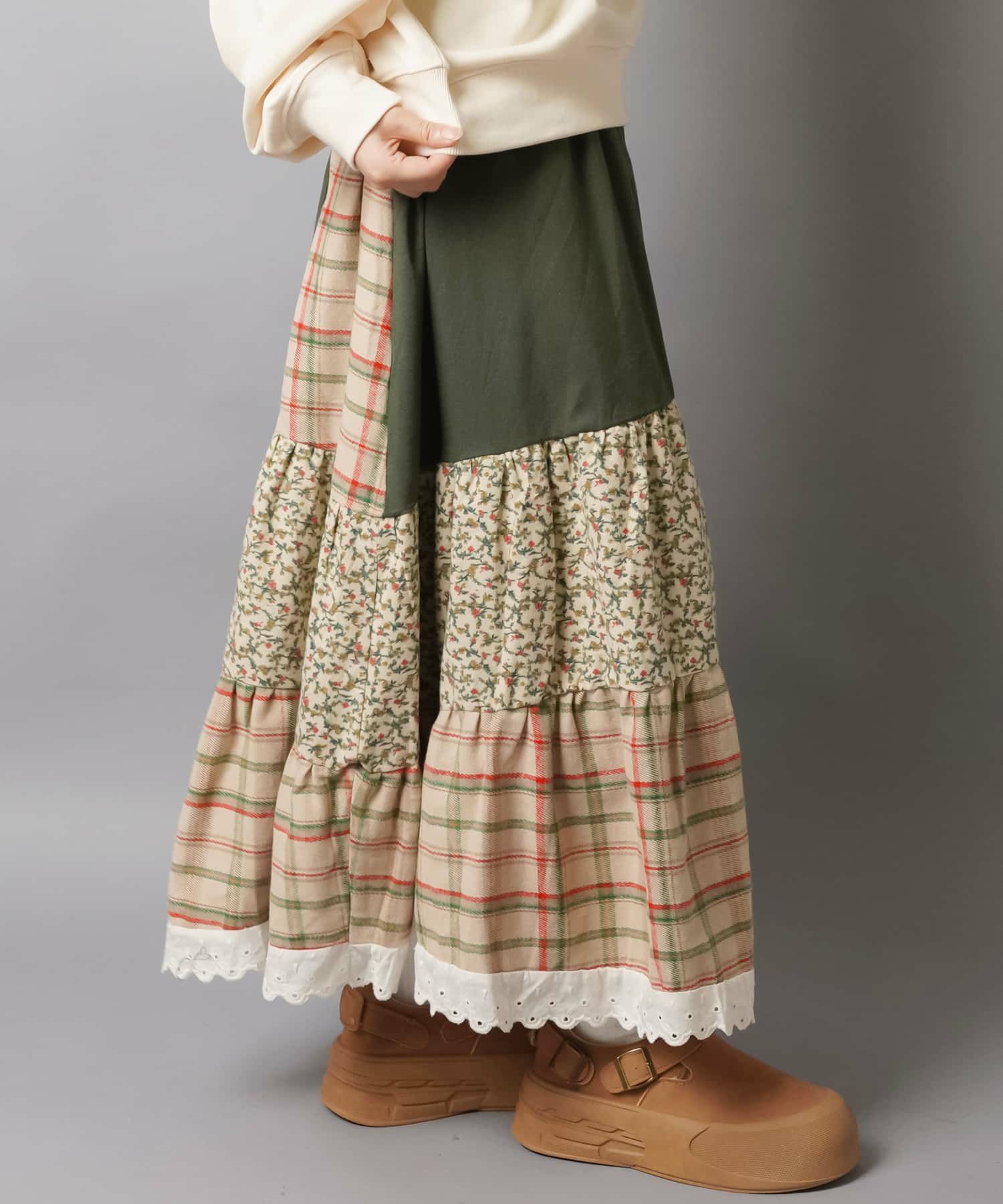 スカートにレギンスやタイツをレイヤードするのもポイント。