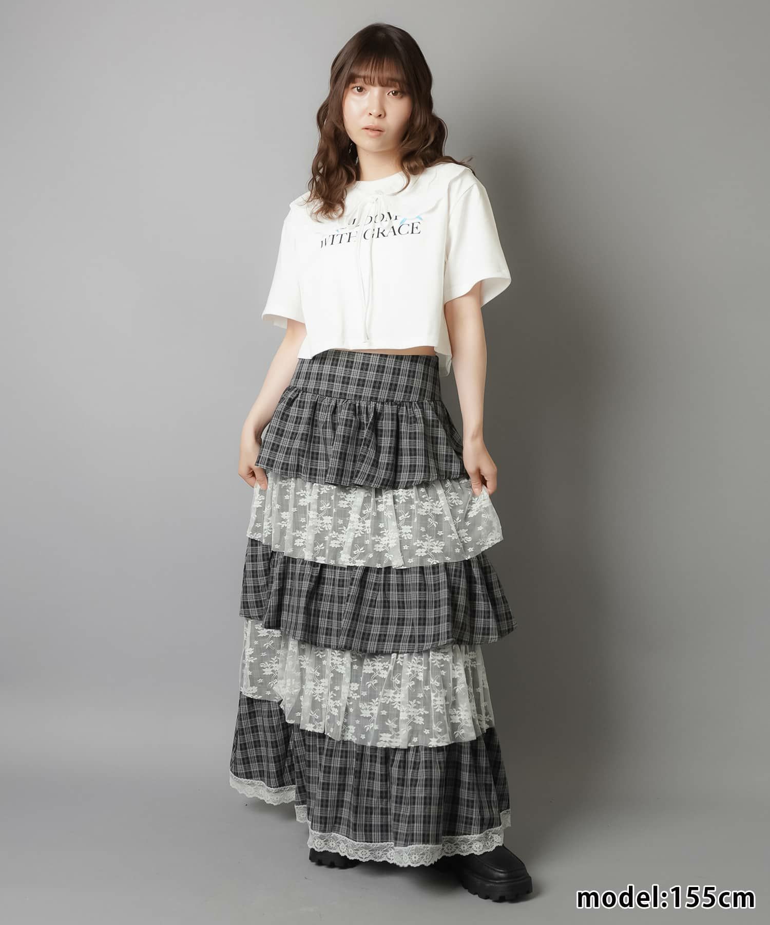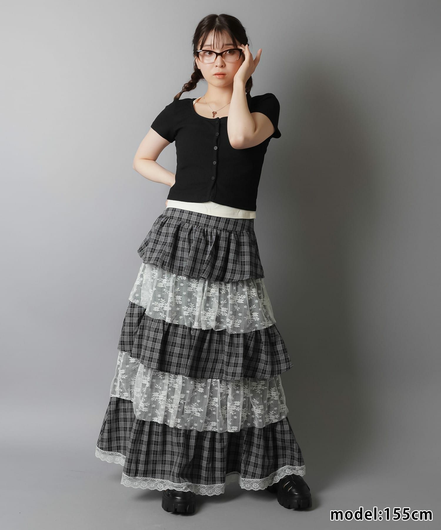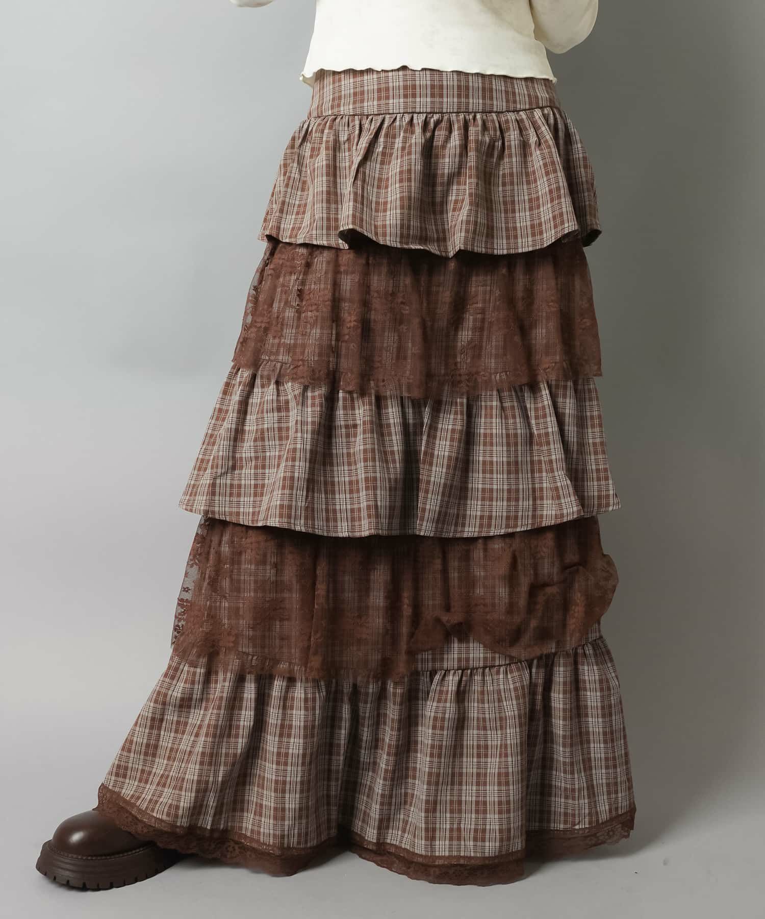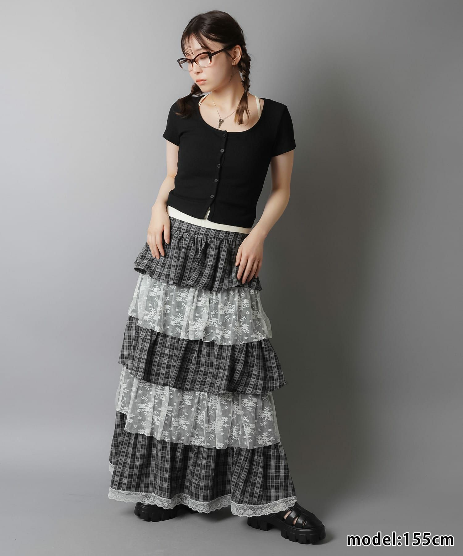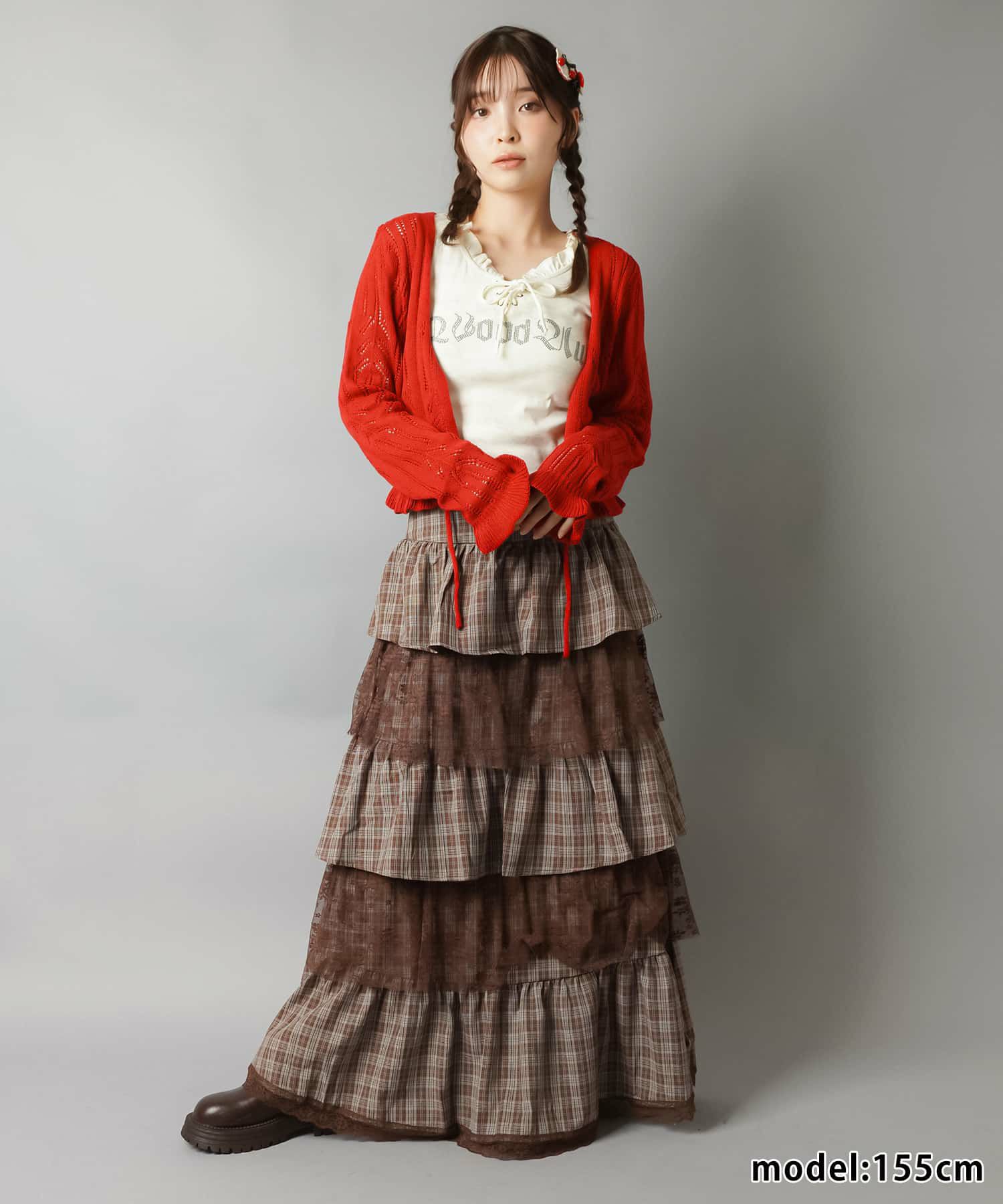 スカートにレギンスやタイツをレイヤードするのもポイント。