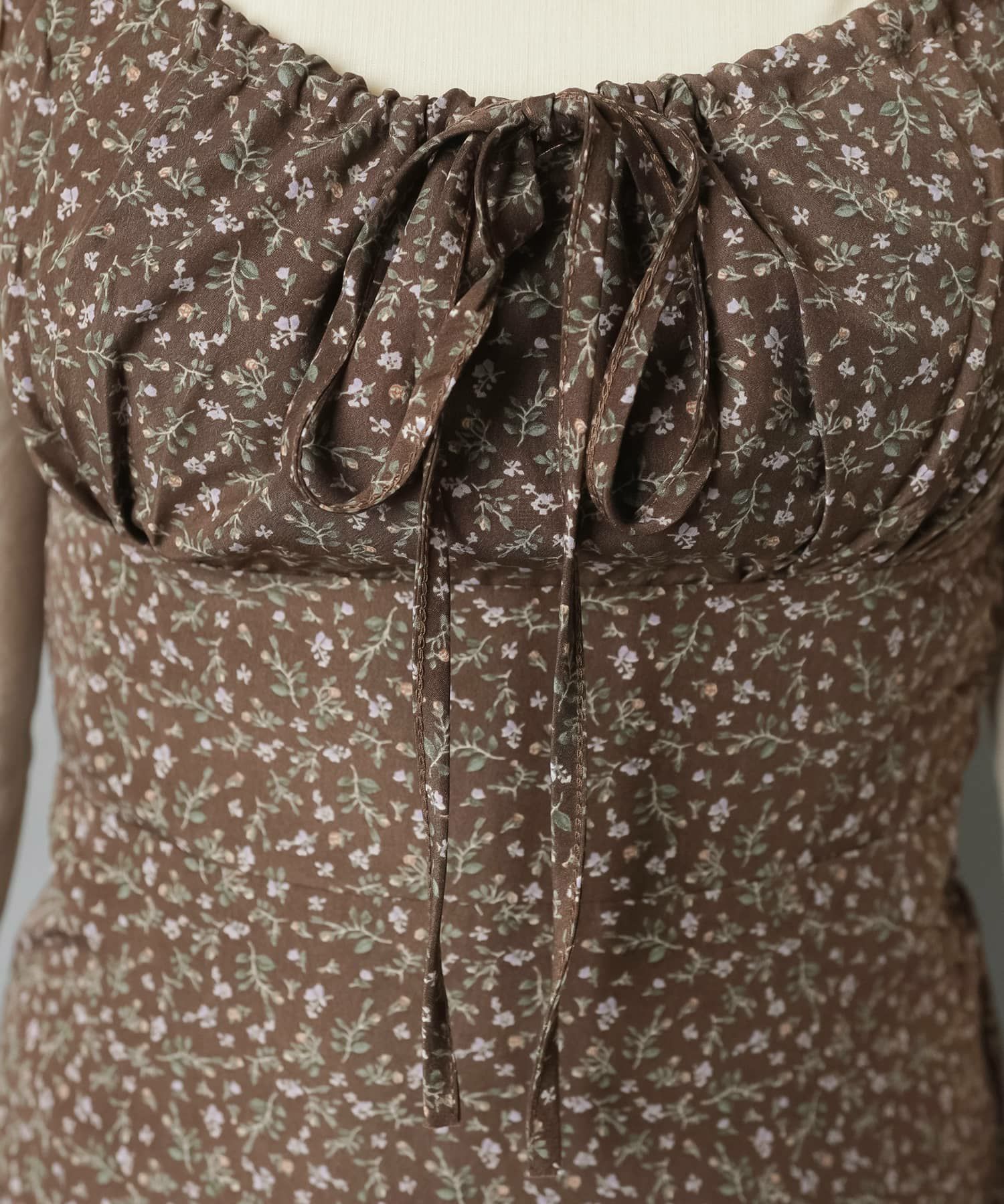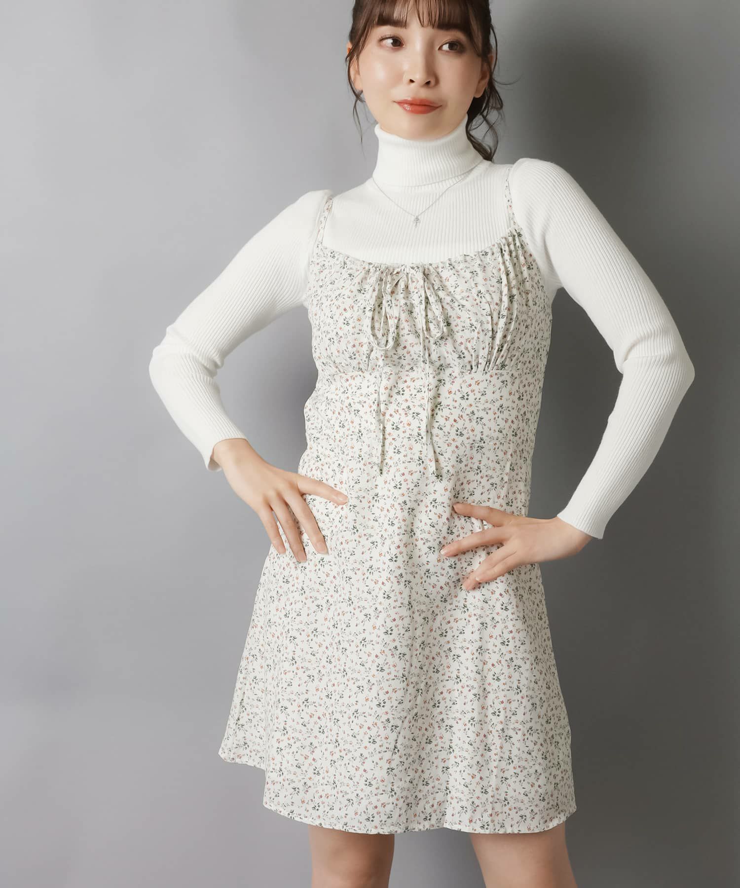 薄手のワンピースにニットベストを重ねたり、