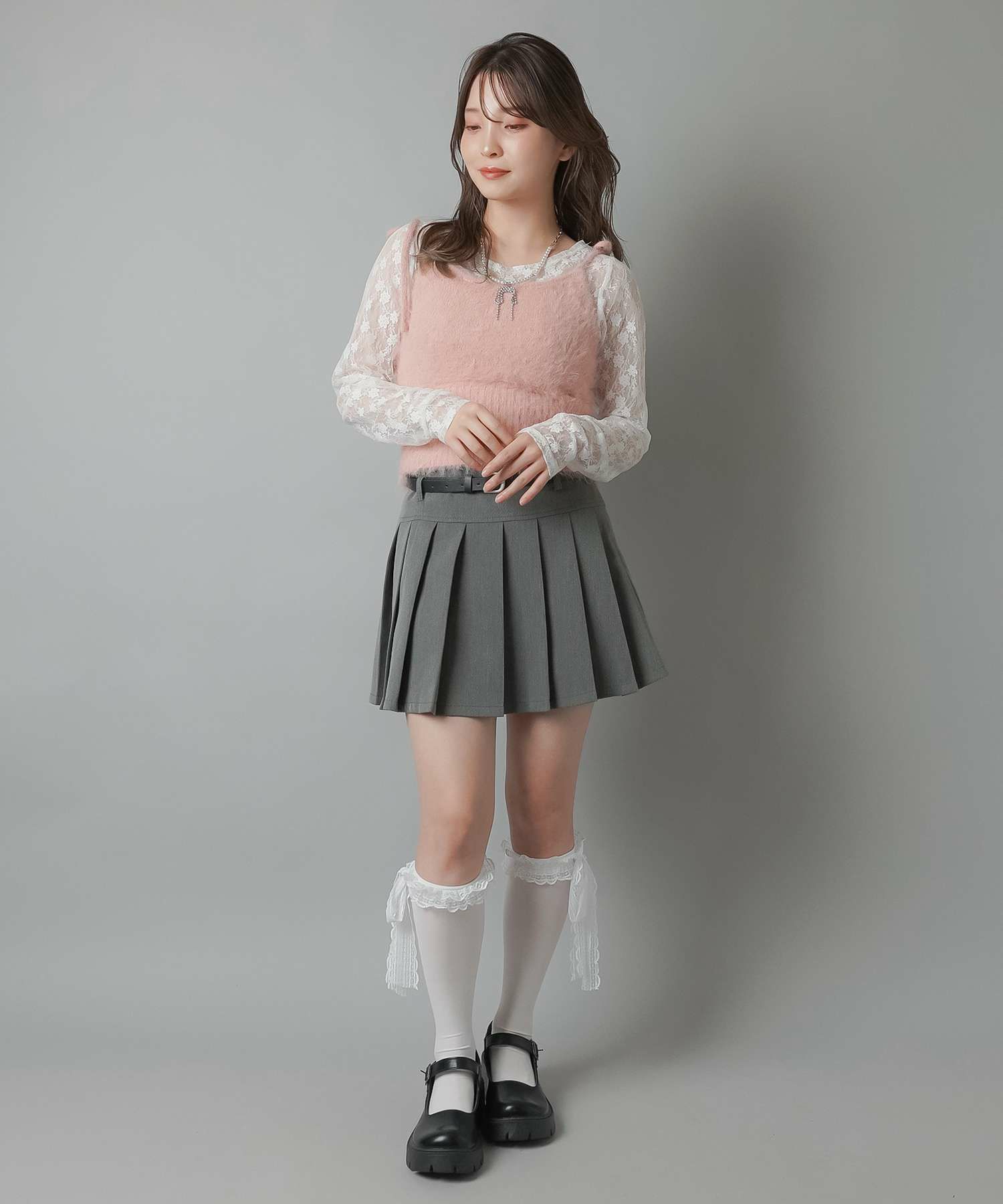 【34%OFF】台形ミニスカート/レース/インナーパンツ付き