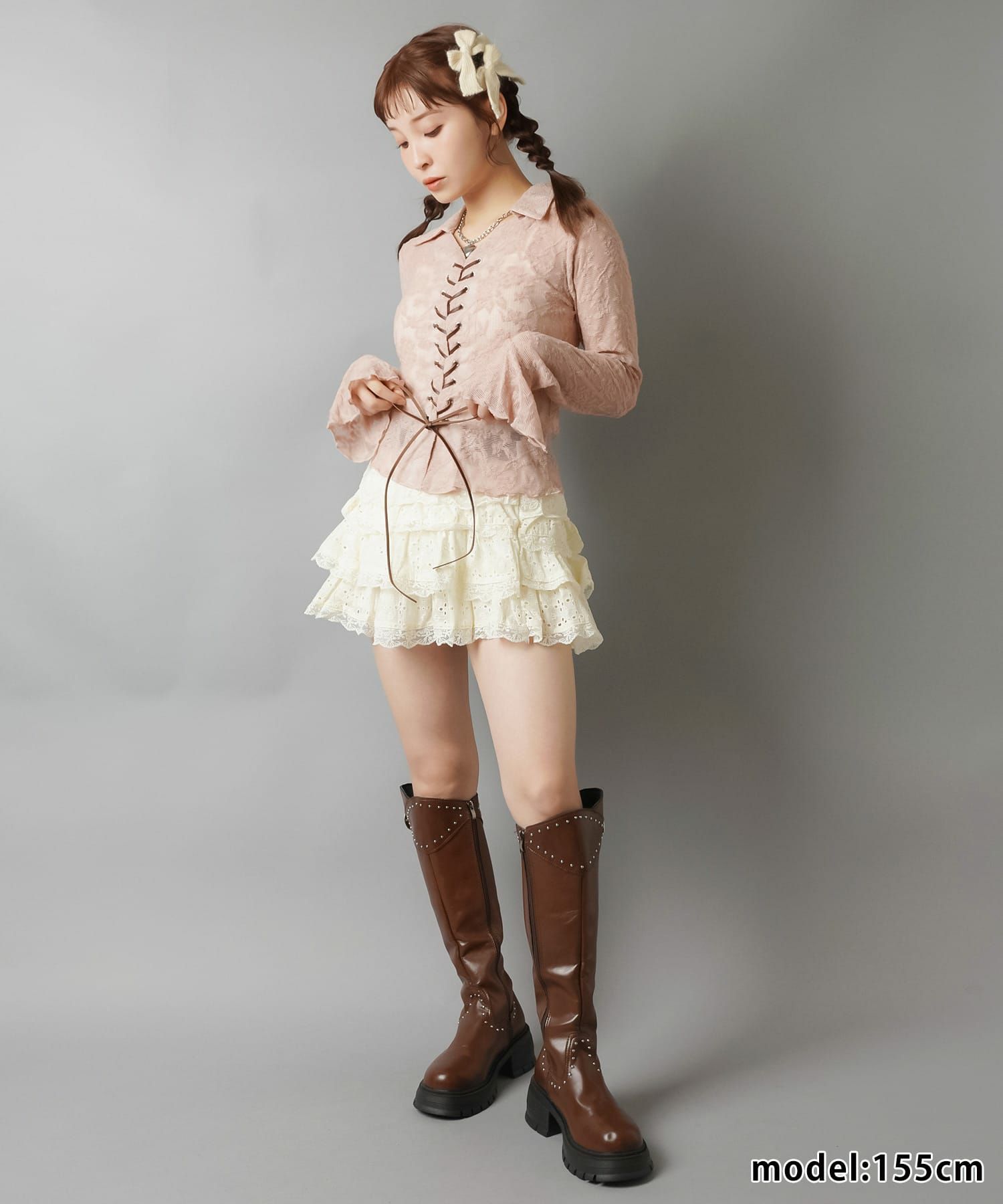 【39%OFF】レースティアードミニスカート/インナーパンツ付き