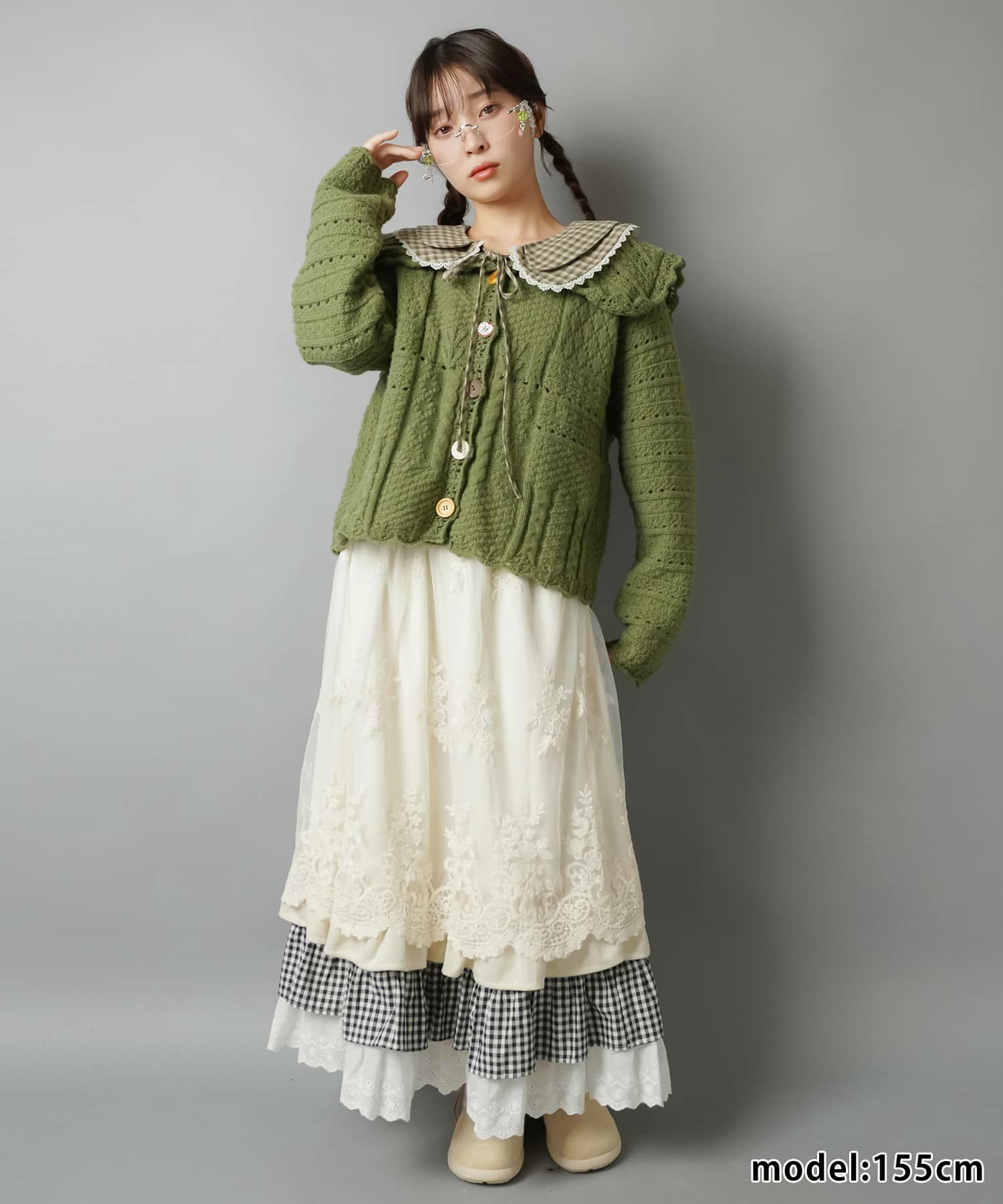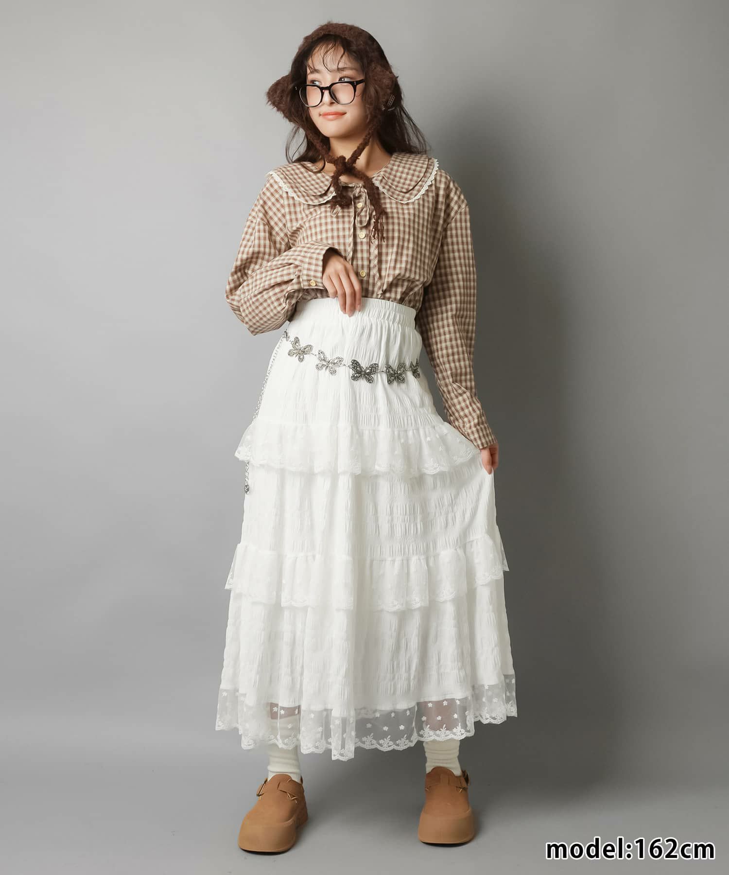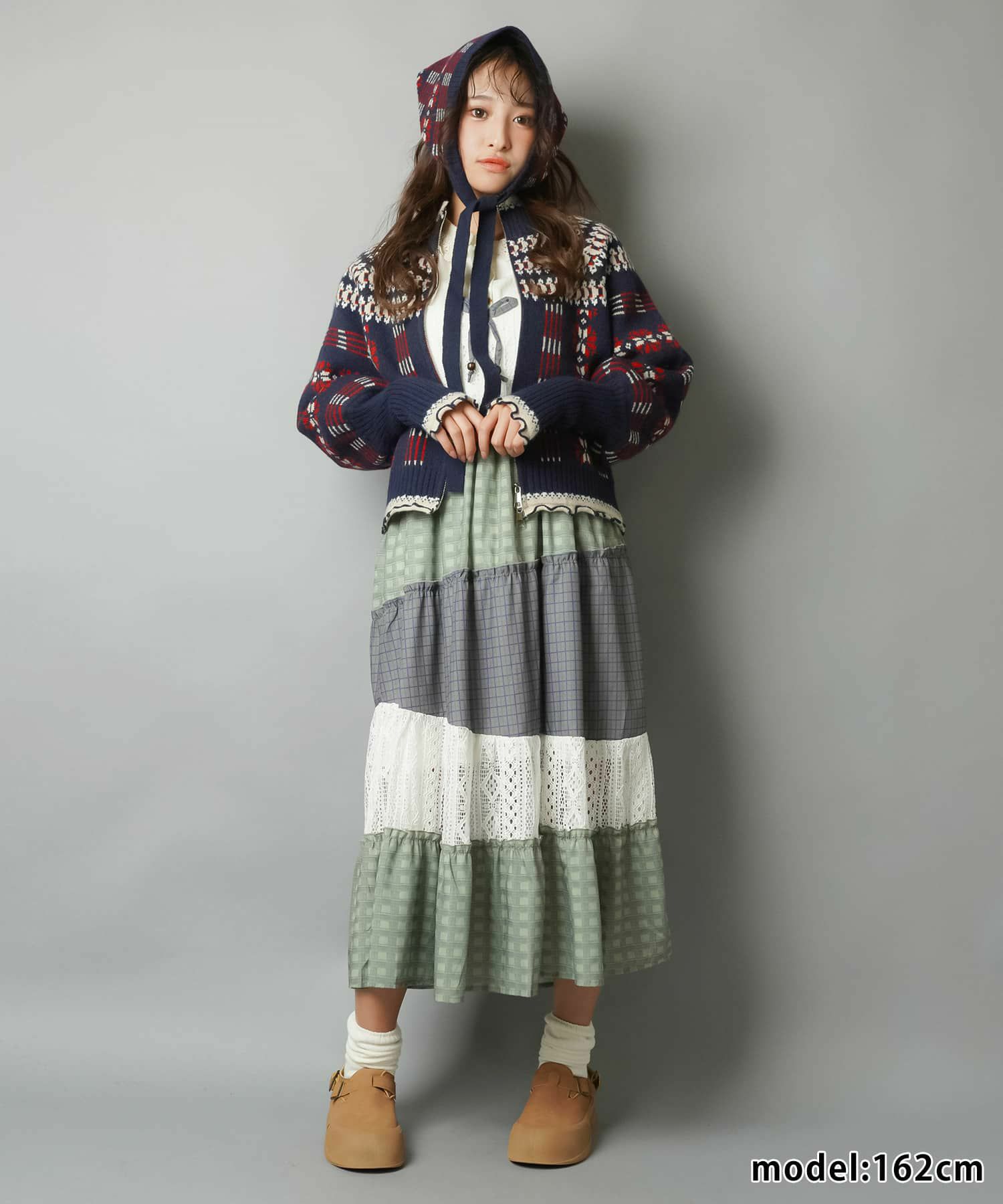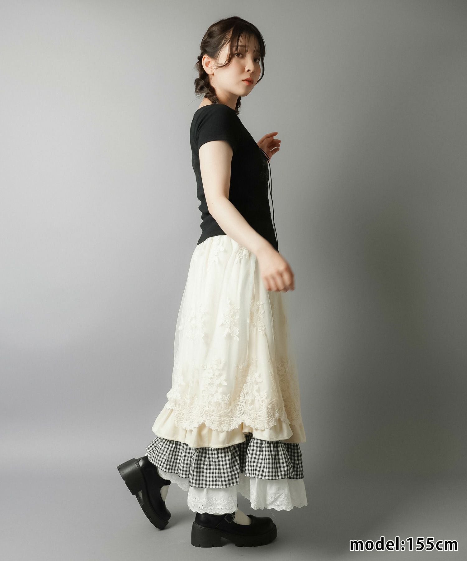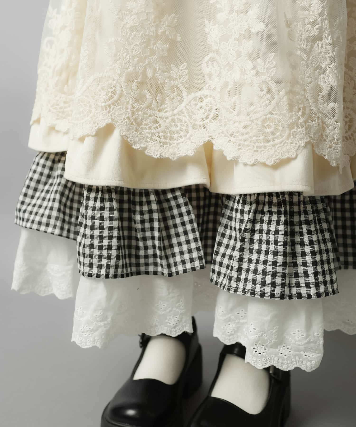 【75%OFF】ロングスカート/レースレイヤードチェック/#NEO森ガール