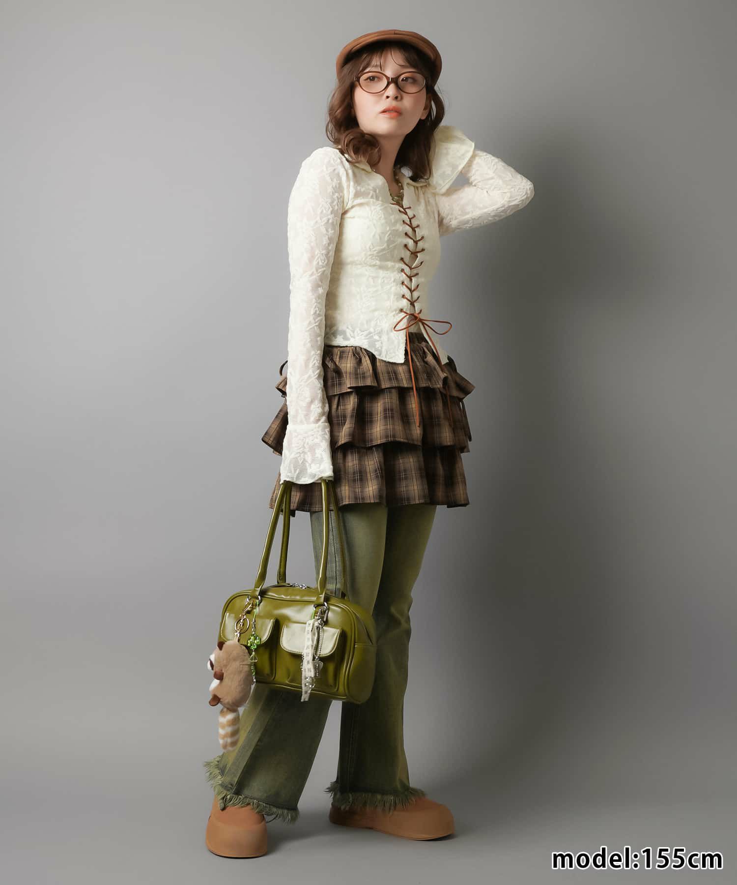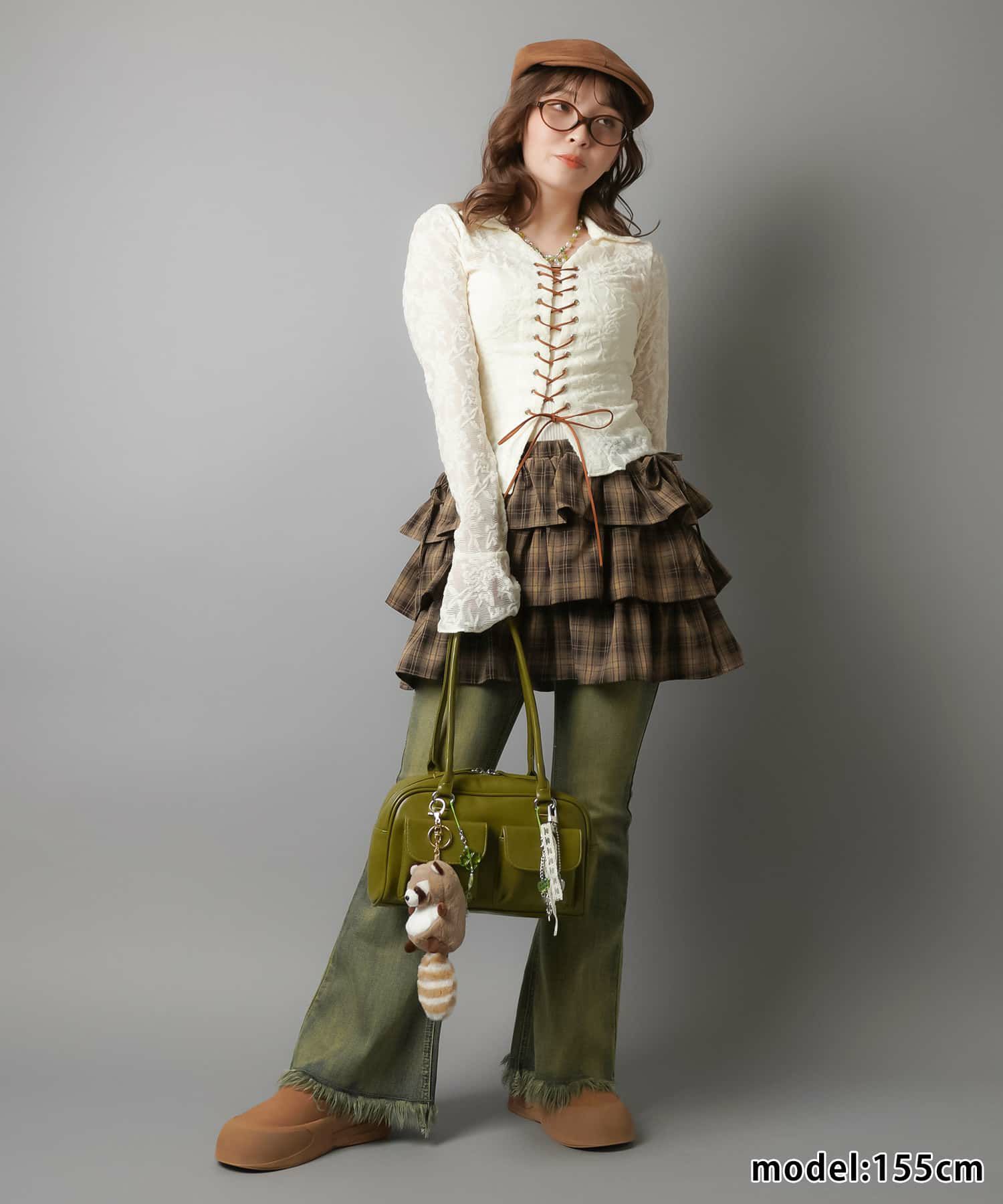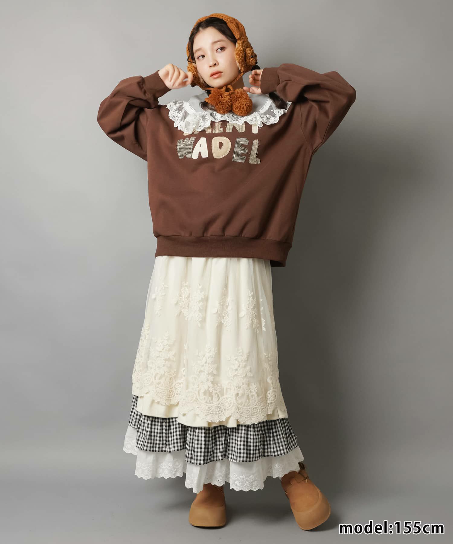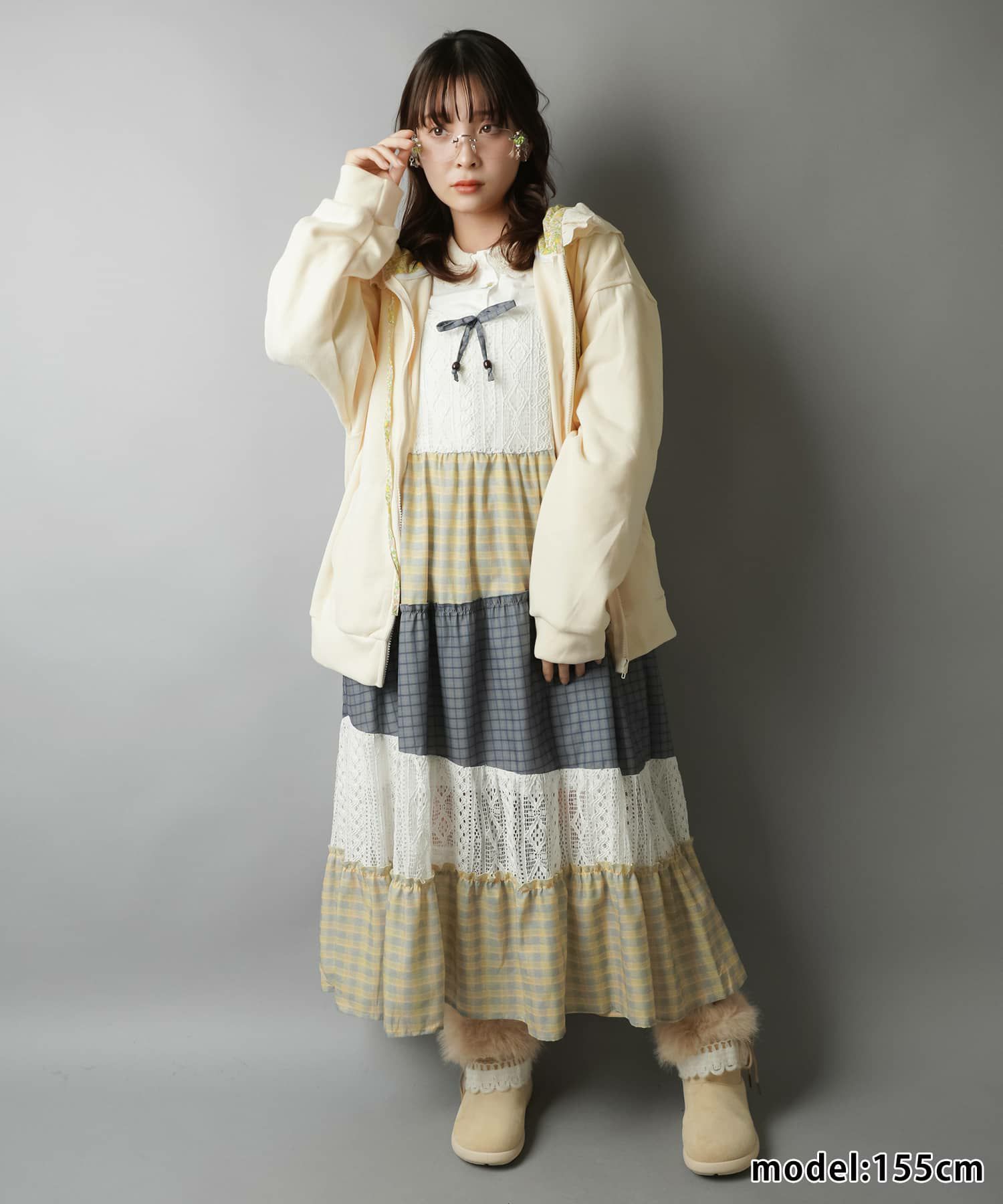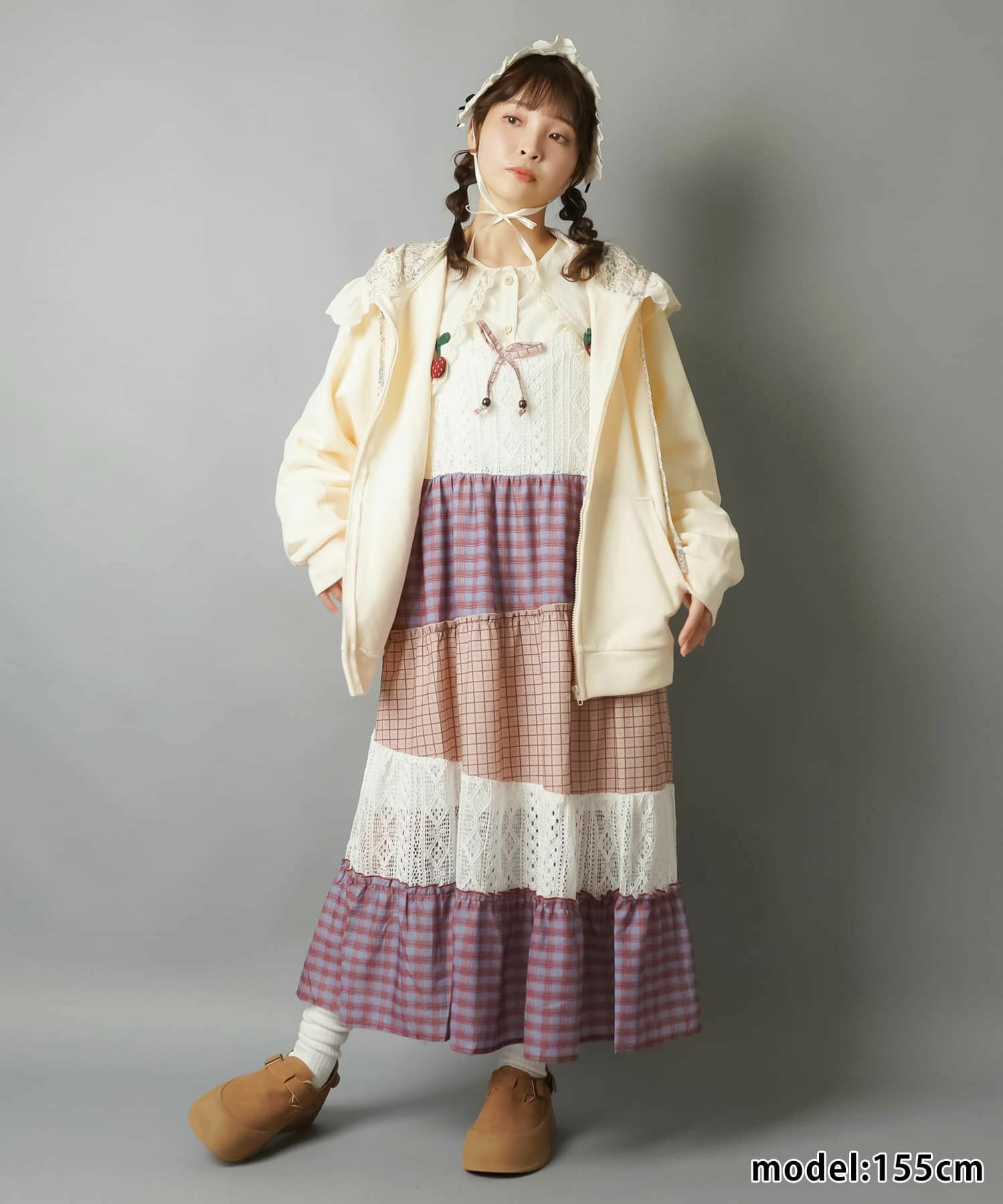 【75%OFF】ロングスカート/レースレイヤードチェック/#NEO森ガール