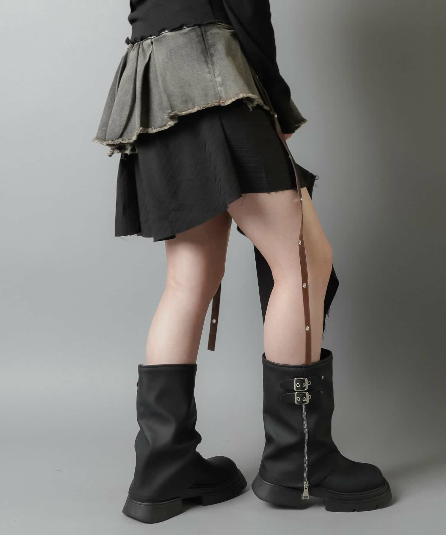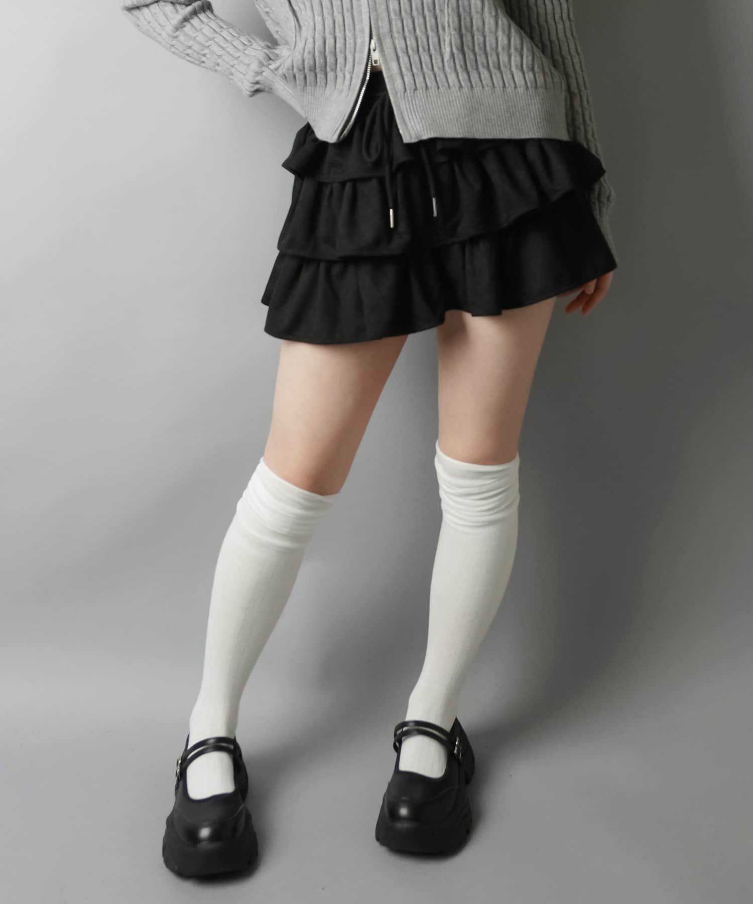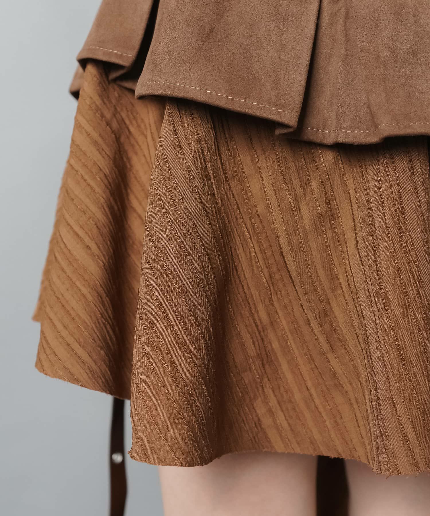 大人気デザイン第2弾!スエードで秋冬仕様に🍂❄️ レイヤード風スエードミドルスカート/フリル/イレヘム/インナーパンツ付き