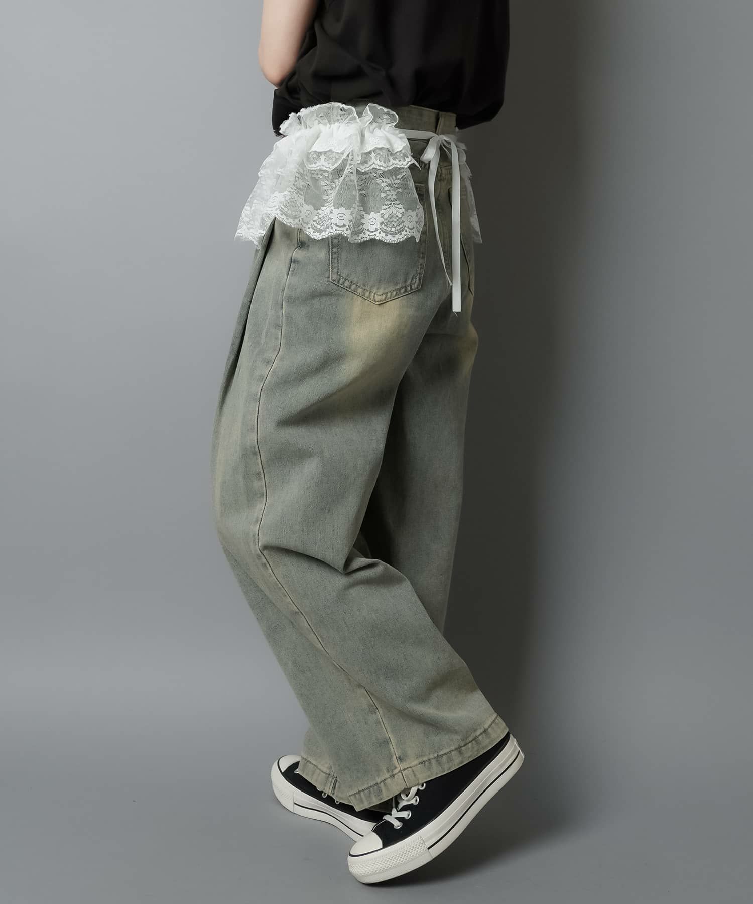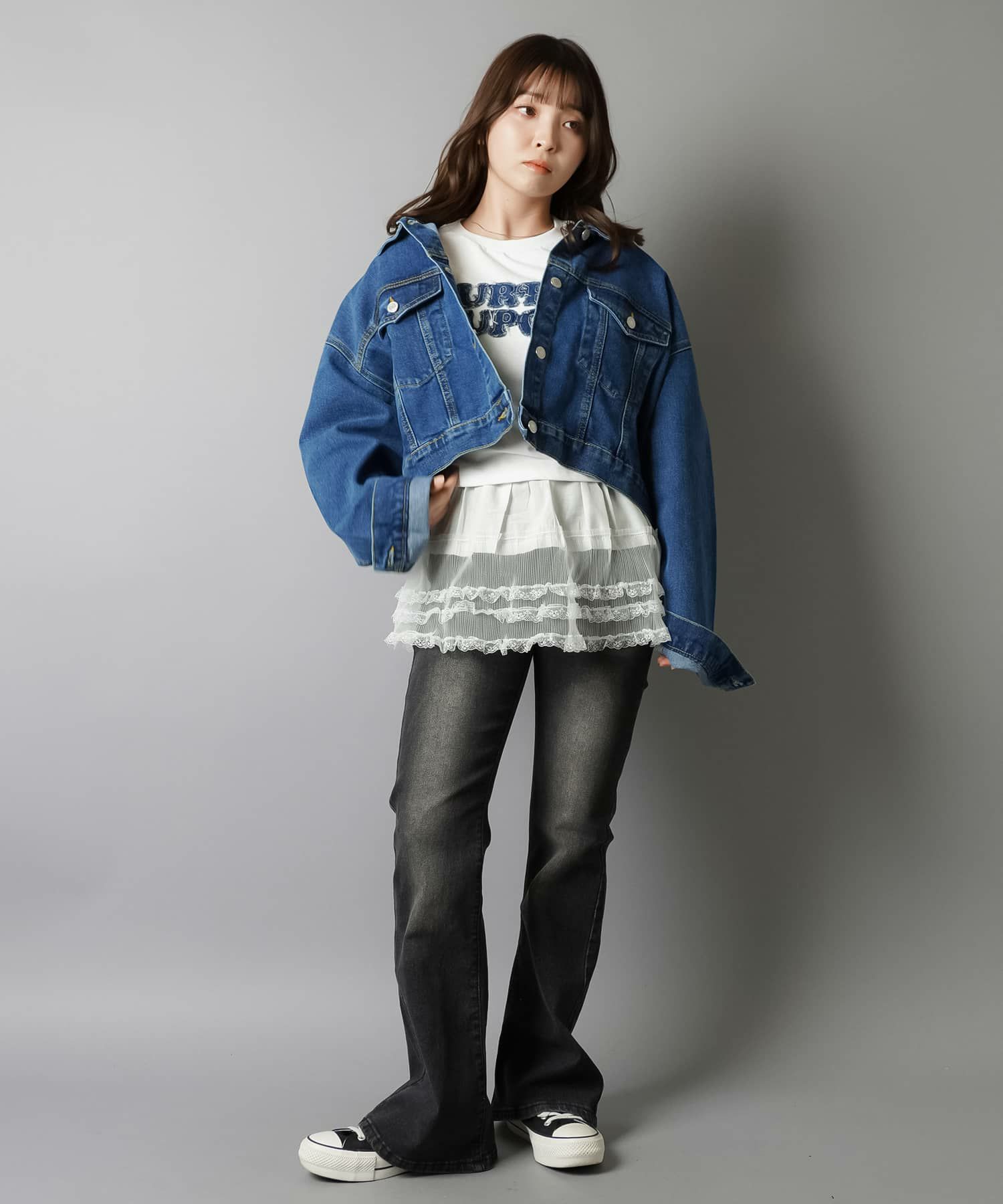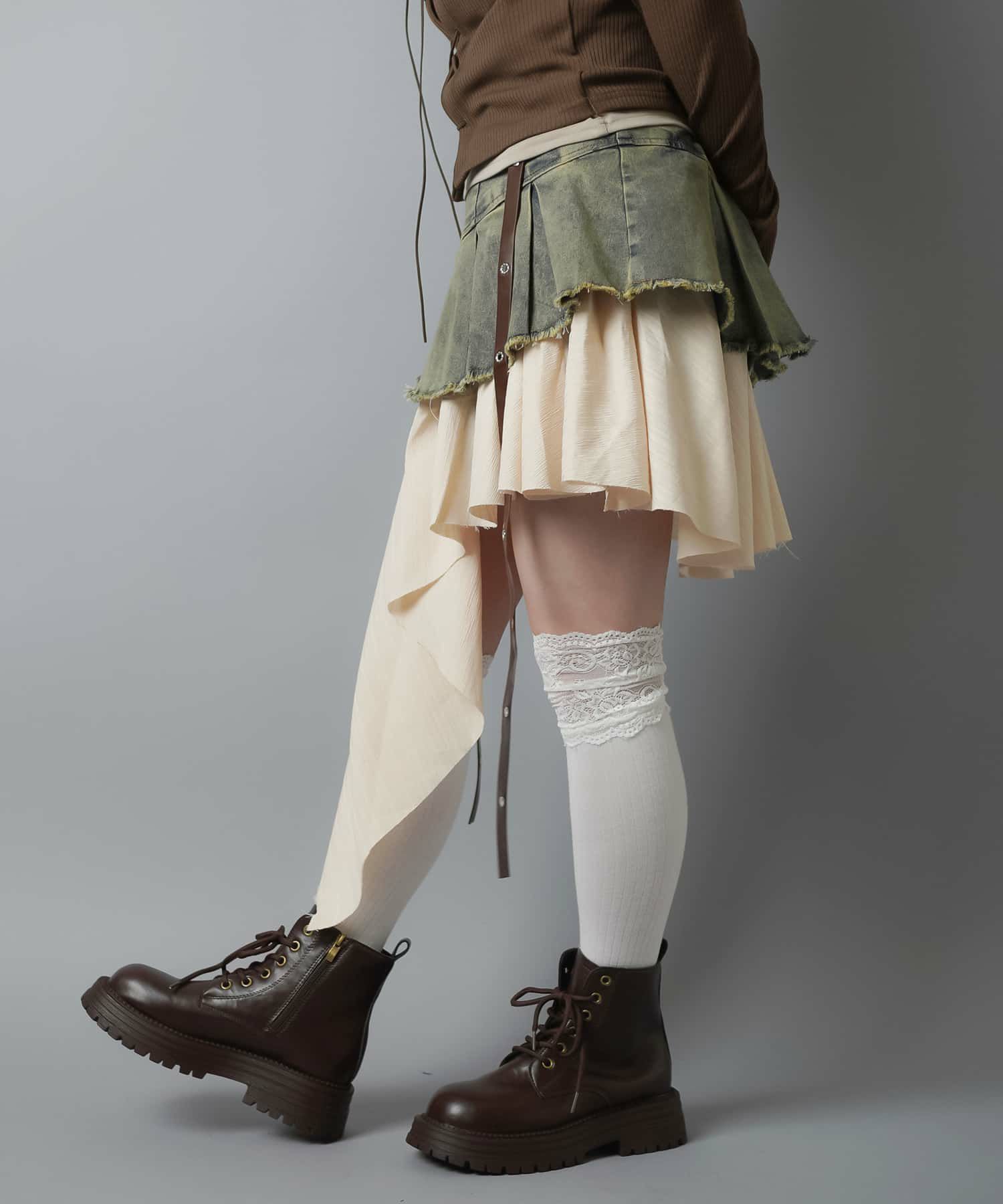 デニムレイヤードでNEO森ガールに🌳 イレヘムレースミニスカート/インナーパンツ付き