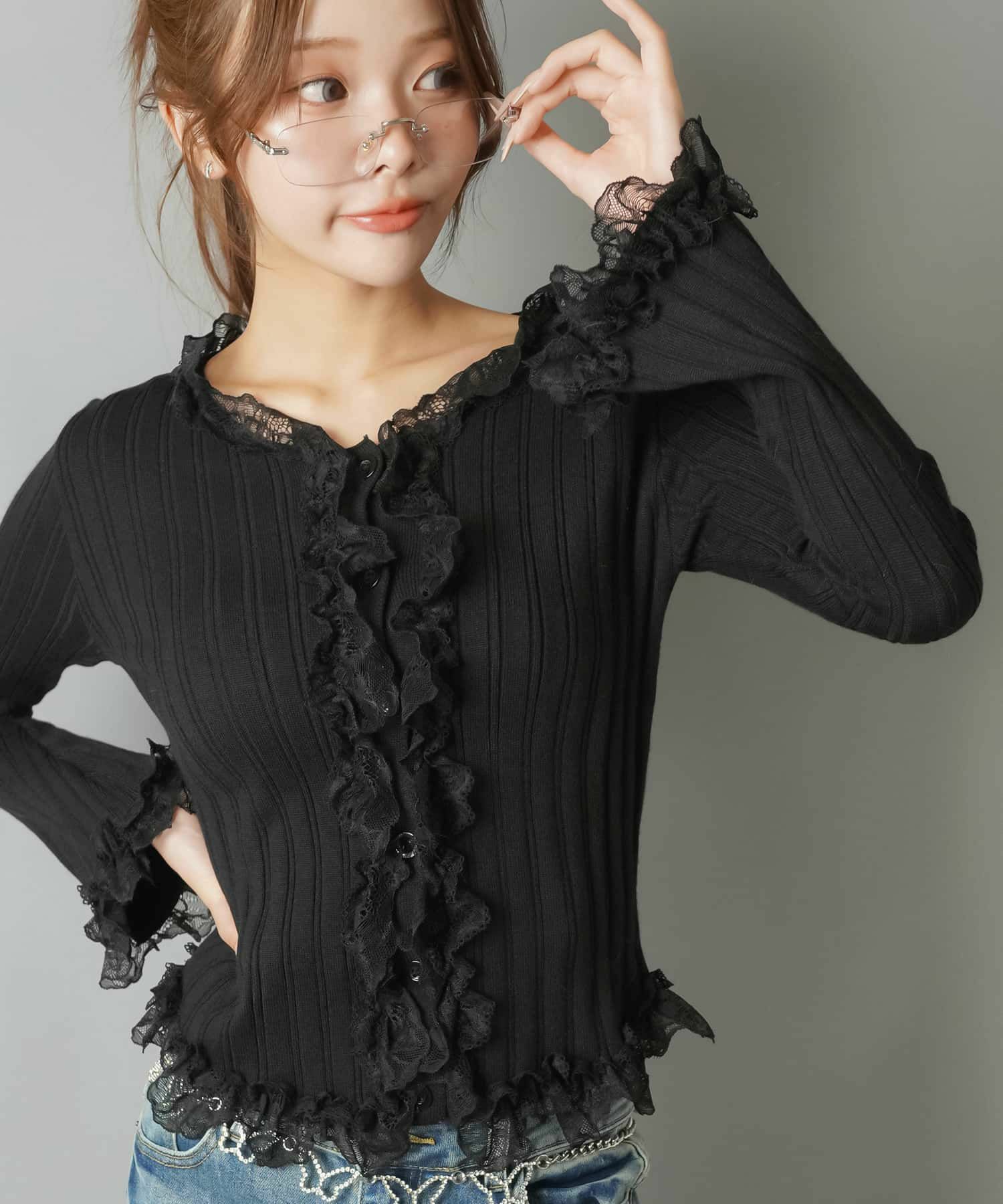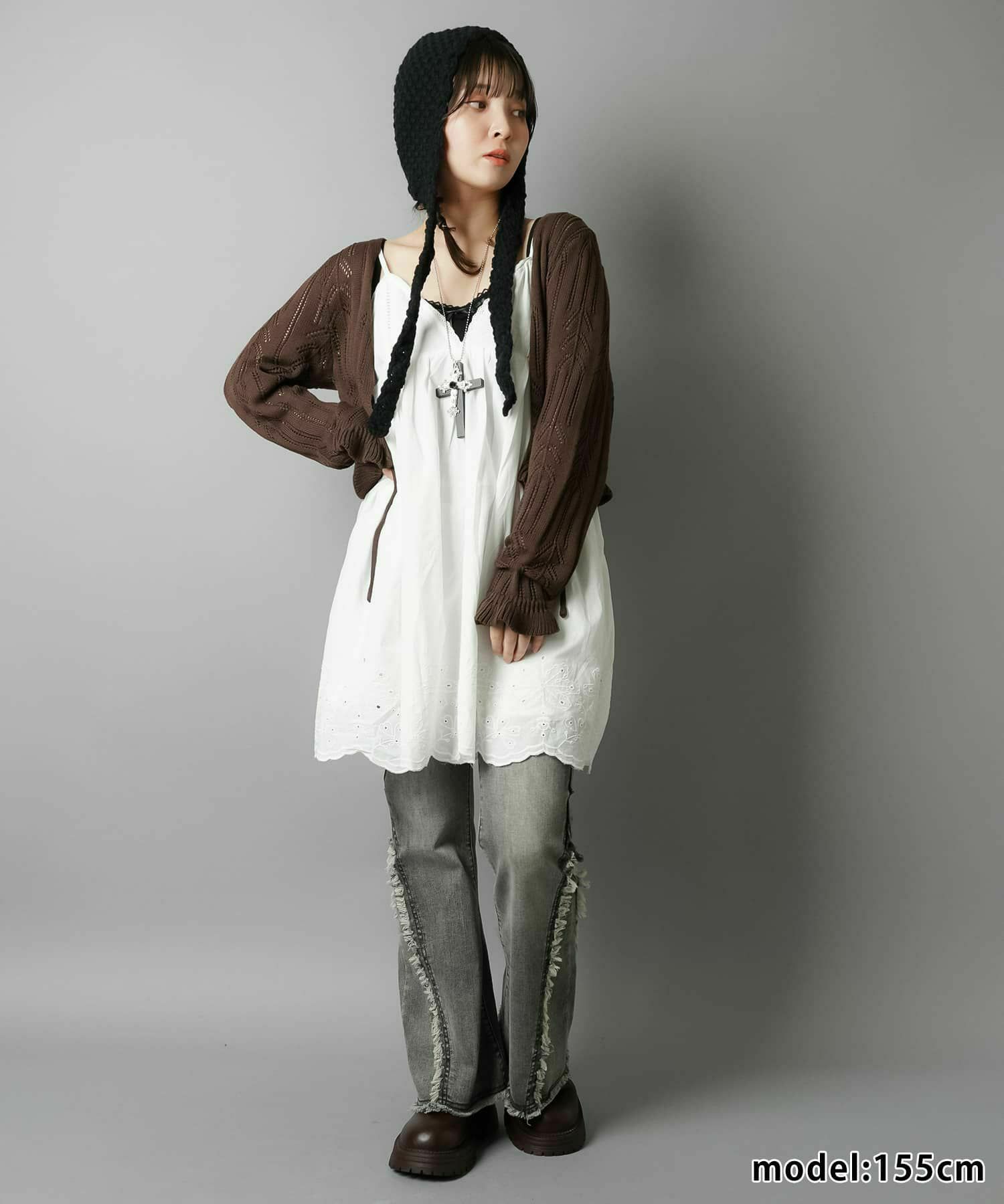 【26%OFF】レースカーディガン/フレアスリーブ/ローズタイ付き/#NEO森ガール