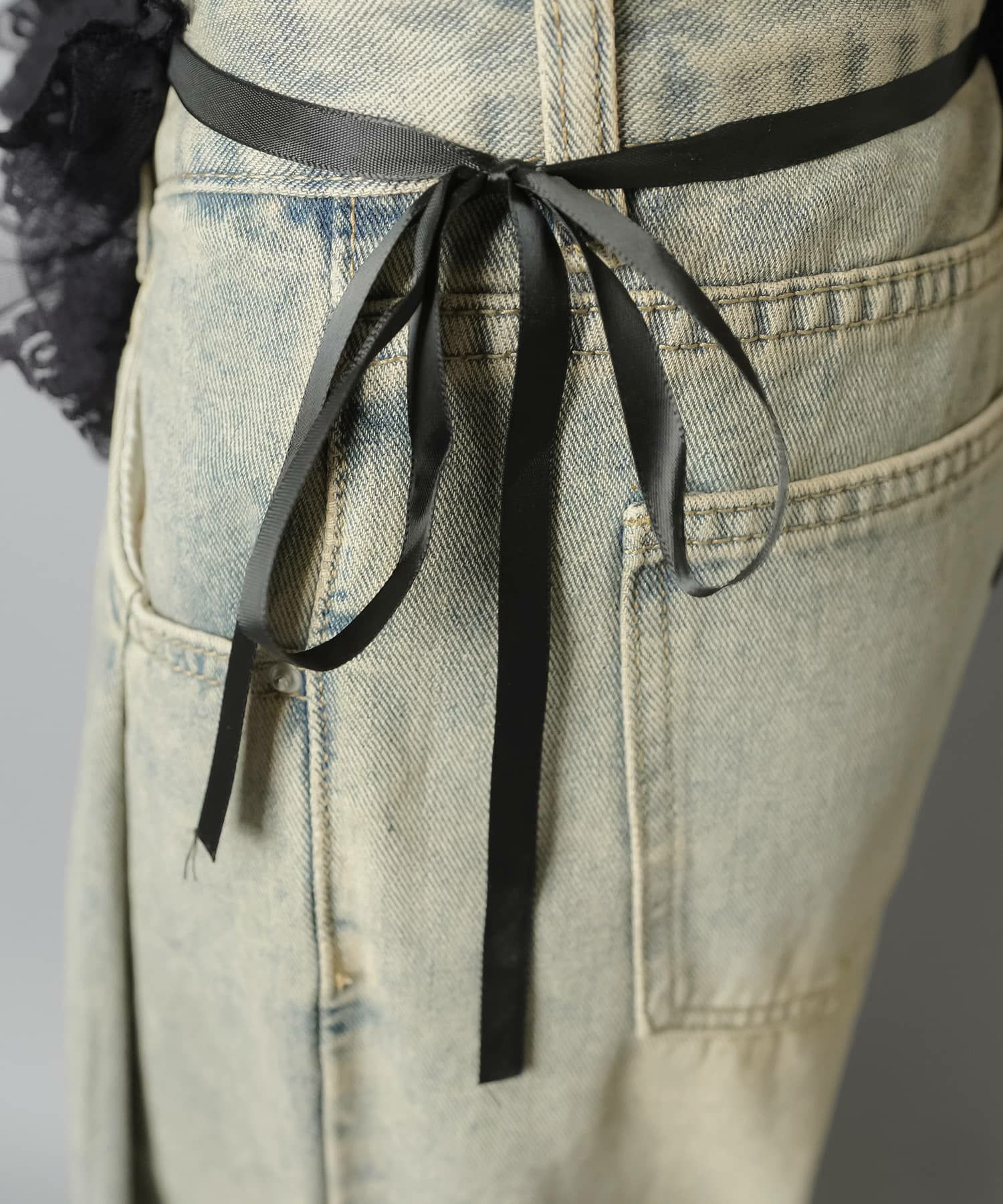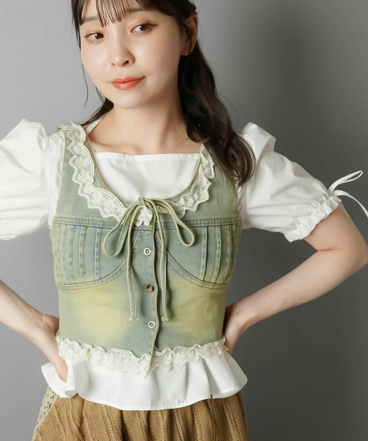 ショート丈デニムベスト/ビスチェ/レース/#NEO森ガール