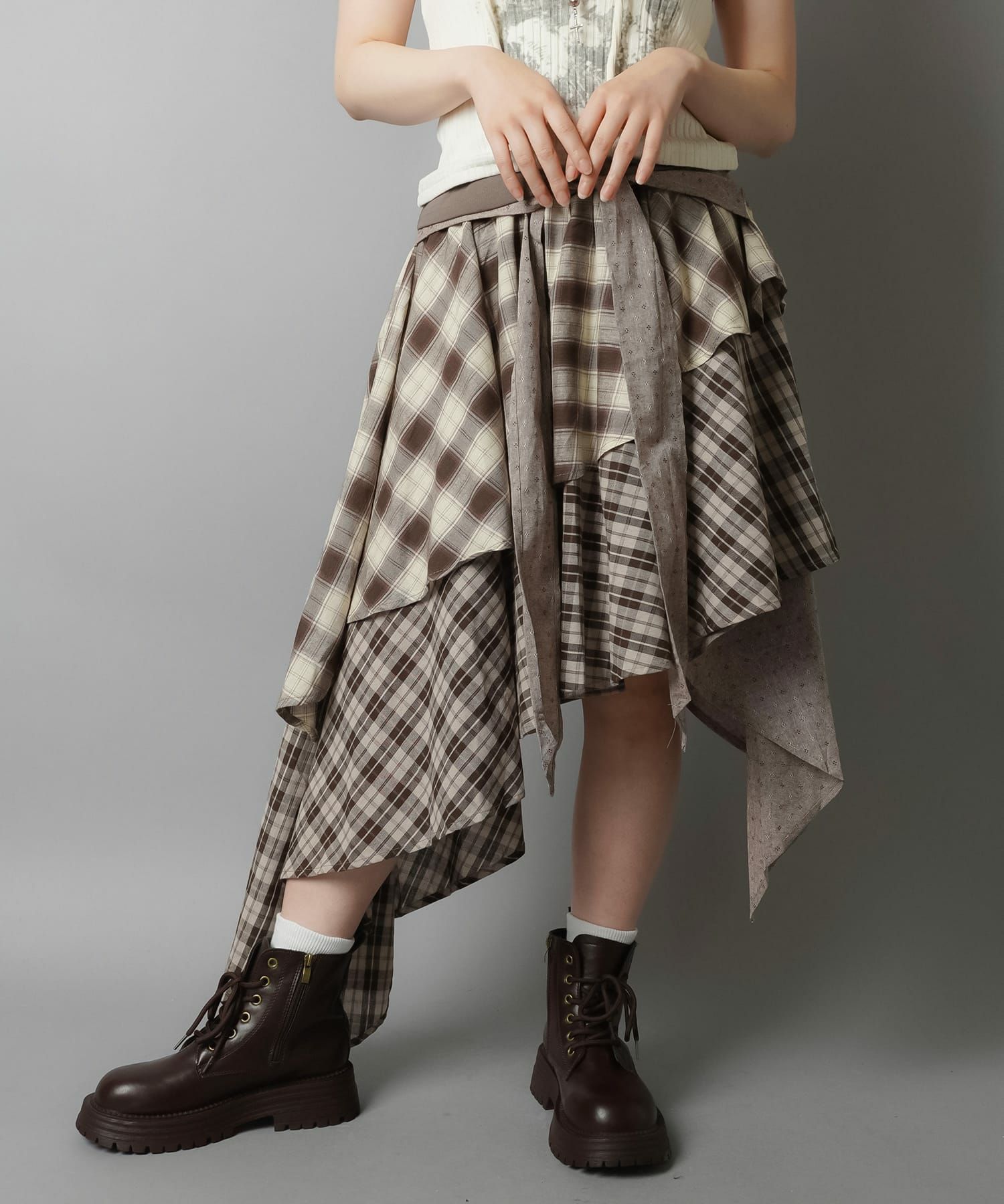 【56%OFF】イレヘムミドルスカート/レイヤード風/チェック柄 #NEO森ガール