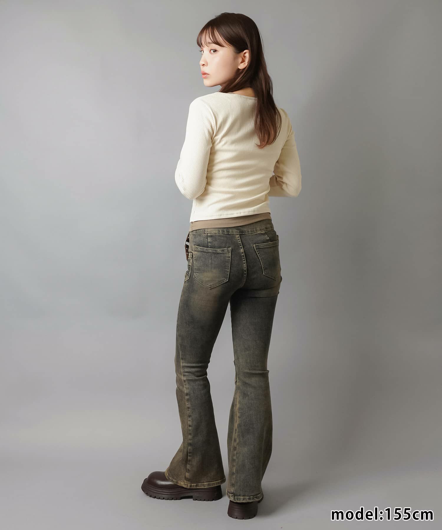 デニムフレアパンツ/フリンジ/3サイズ展開