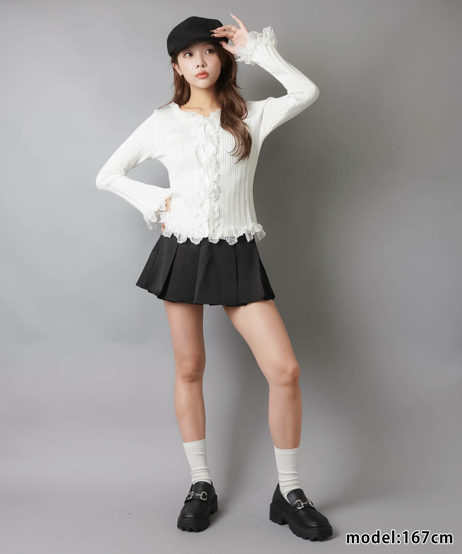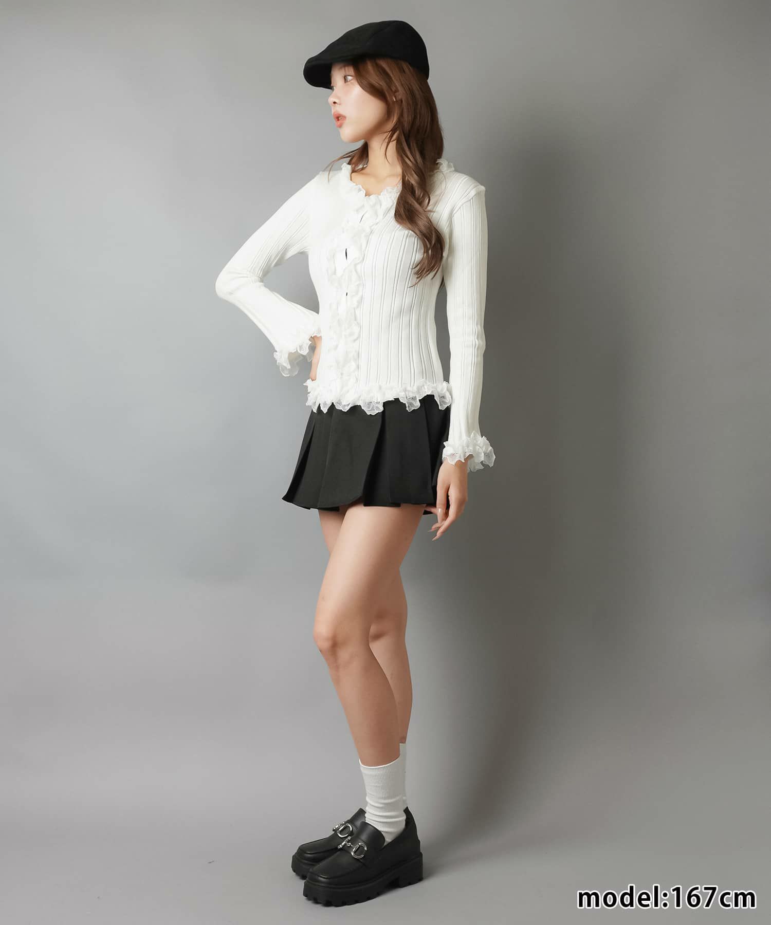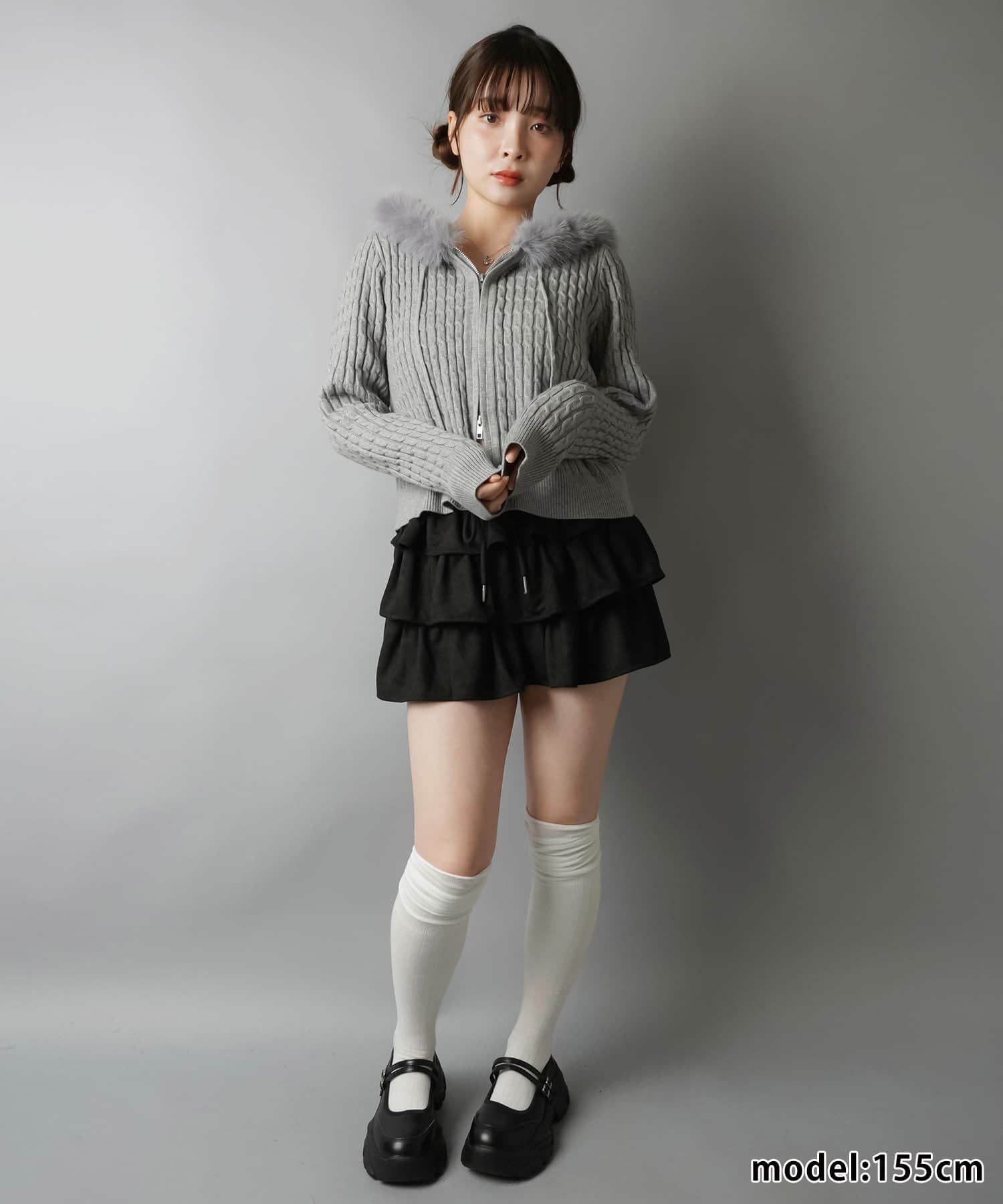 スエードフリルミニスカート/インナーパンツ付き/#NEO森ガール