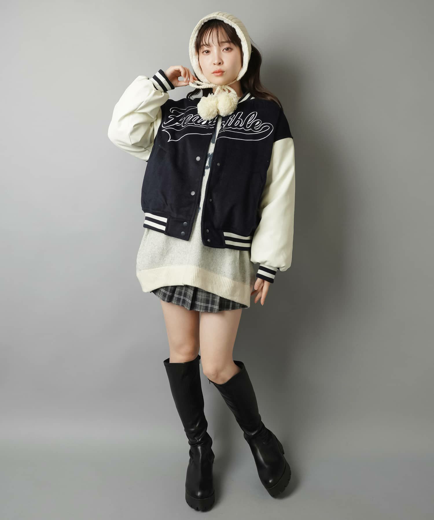 スカートにレギンスやタイツをレイヤードするのもポイント。