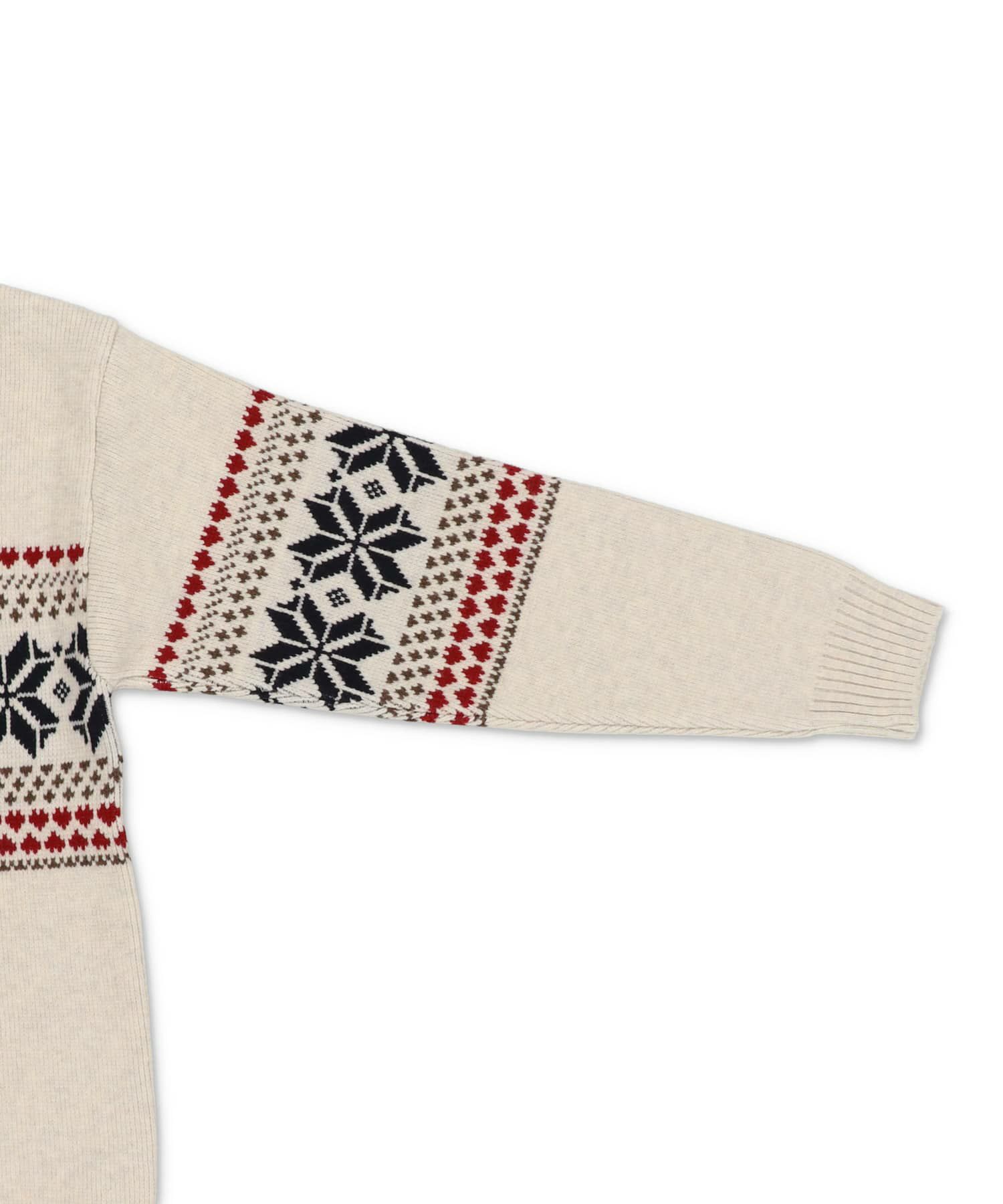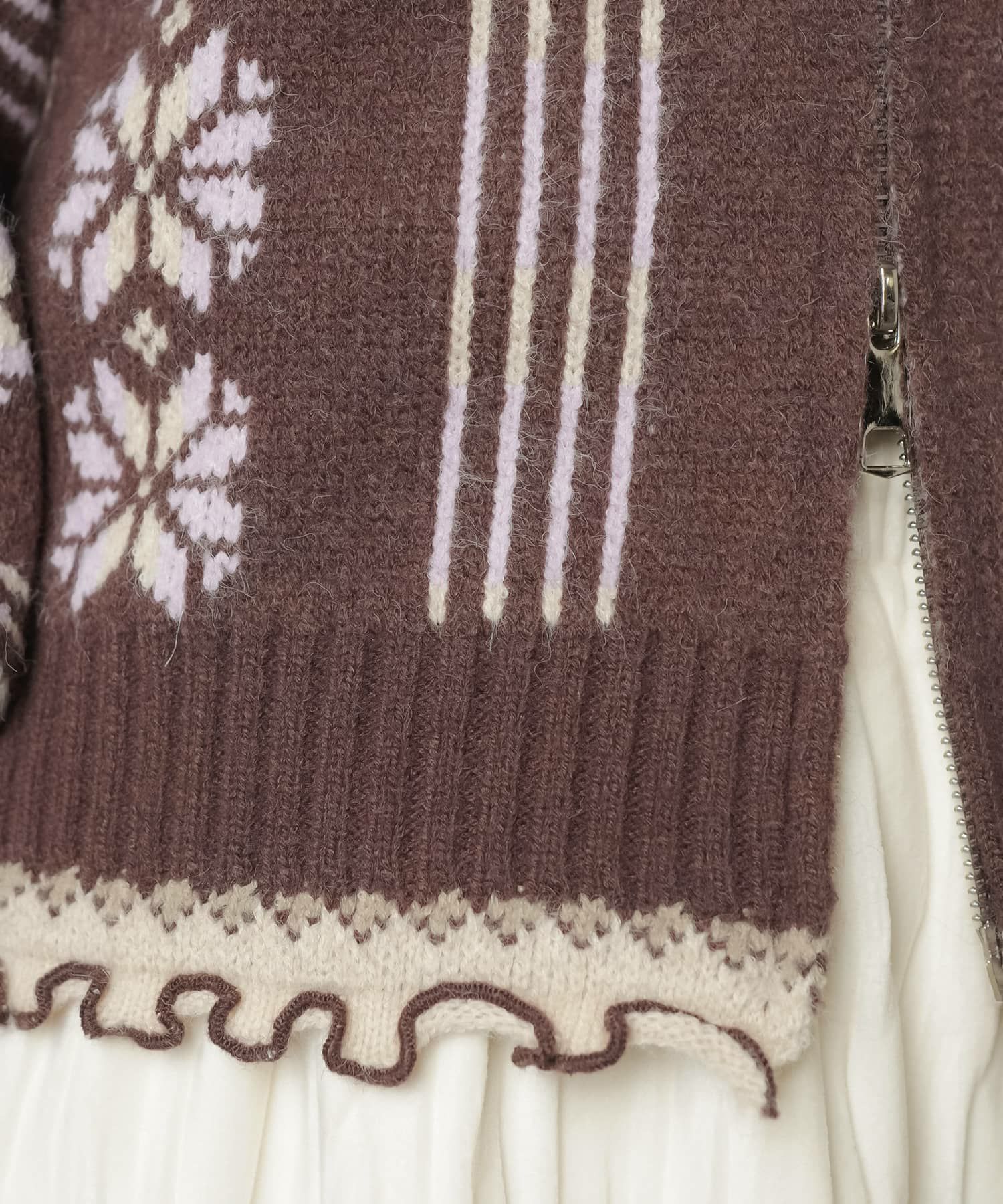 甘さ引き立つ⛄ 【26%OFF】フード付きジップニットカーディガン/ノルディック柄