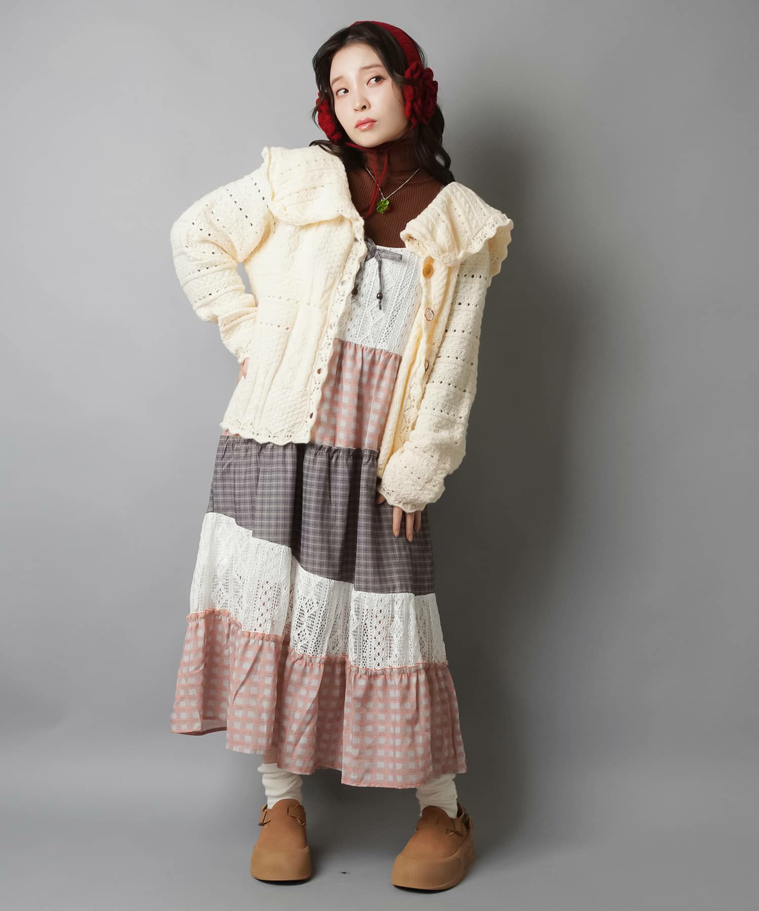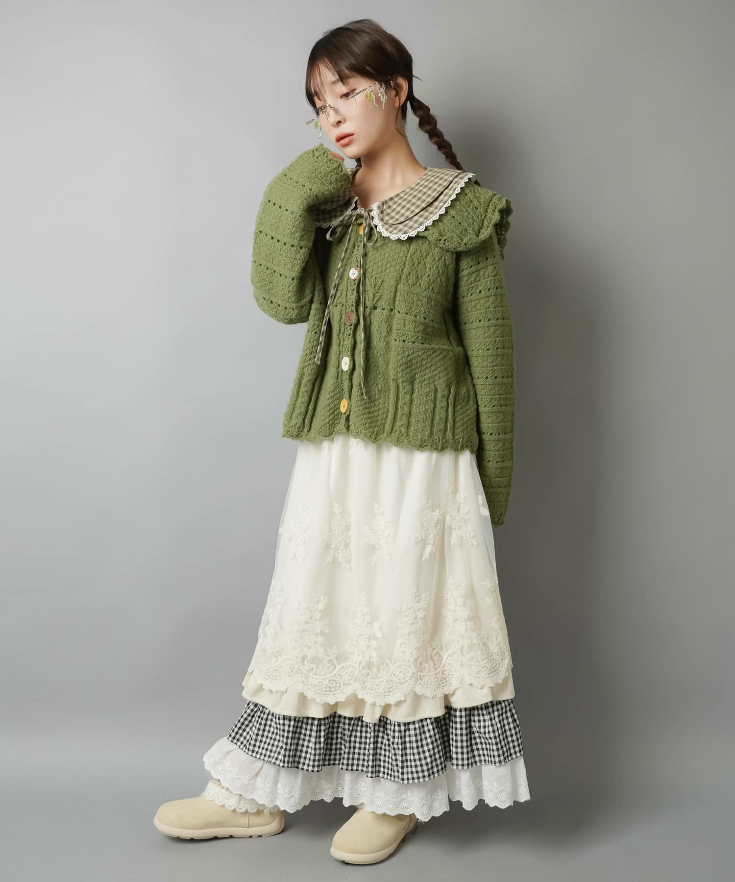 異素材レイヤードロングスカート/4段レイヤード/レース/#NEO森ガール