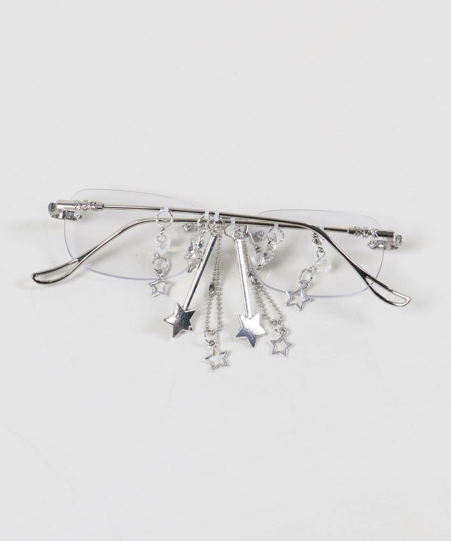 チャーム付きリムレスメガネ/フレームレスメガネ/サイドビーズ