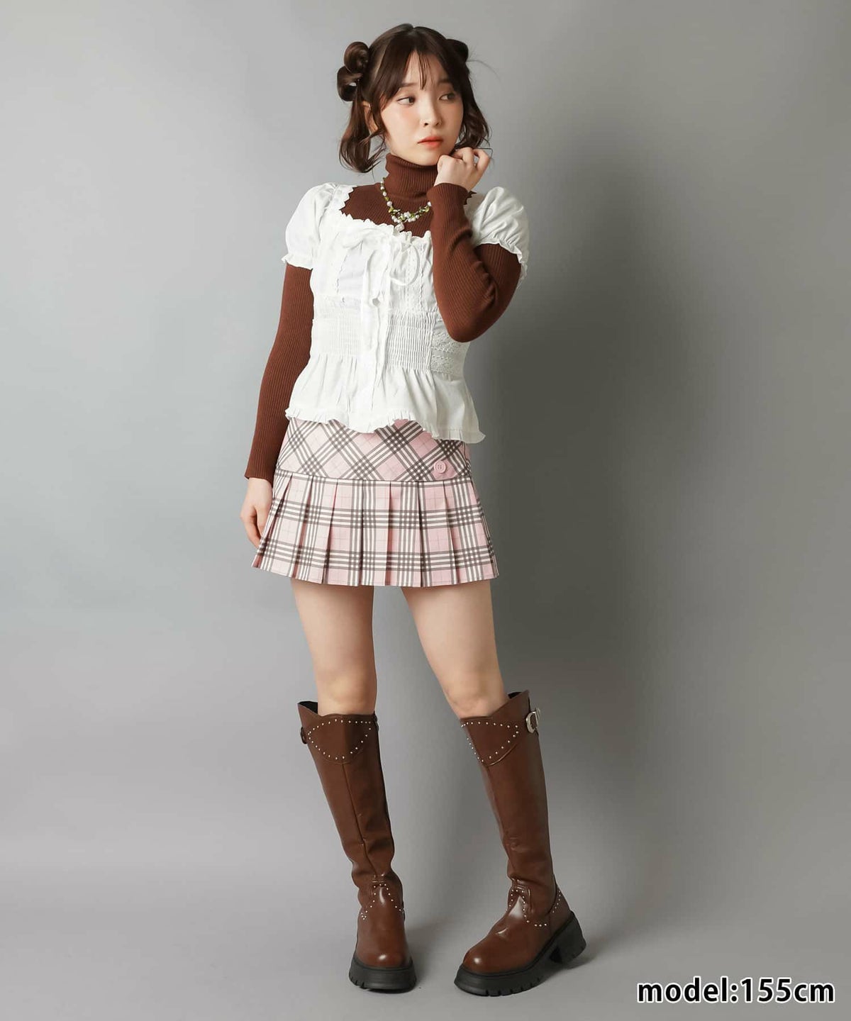 小花柄フリルミニスカート、ピンクチェックプリーツスカート