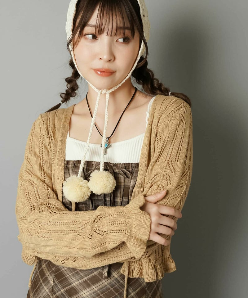 【レイヤード、アースカラー、ダスティカラー、カーディガン、ヘッドアクセ、ナチュラル、レース、ファー】
