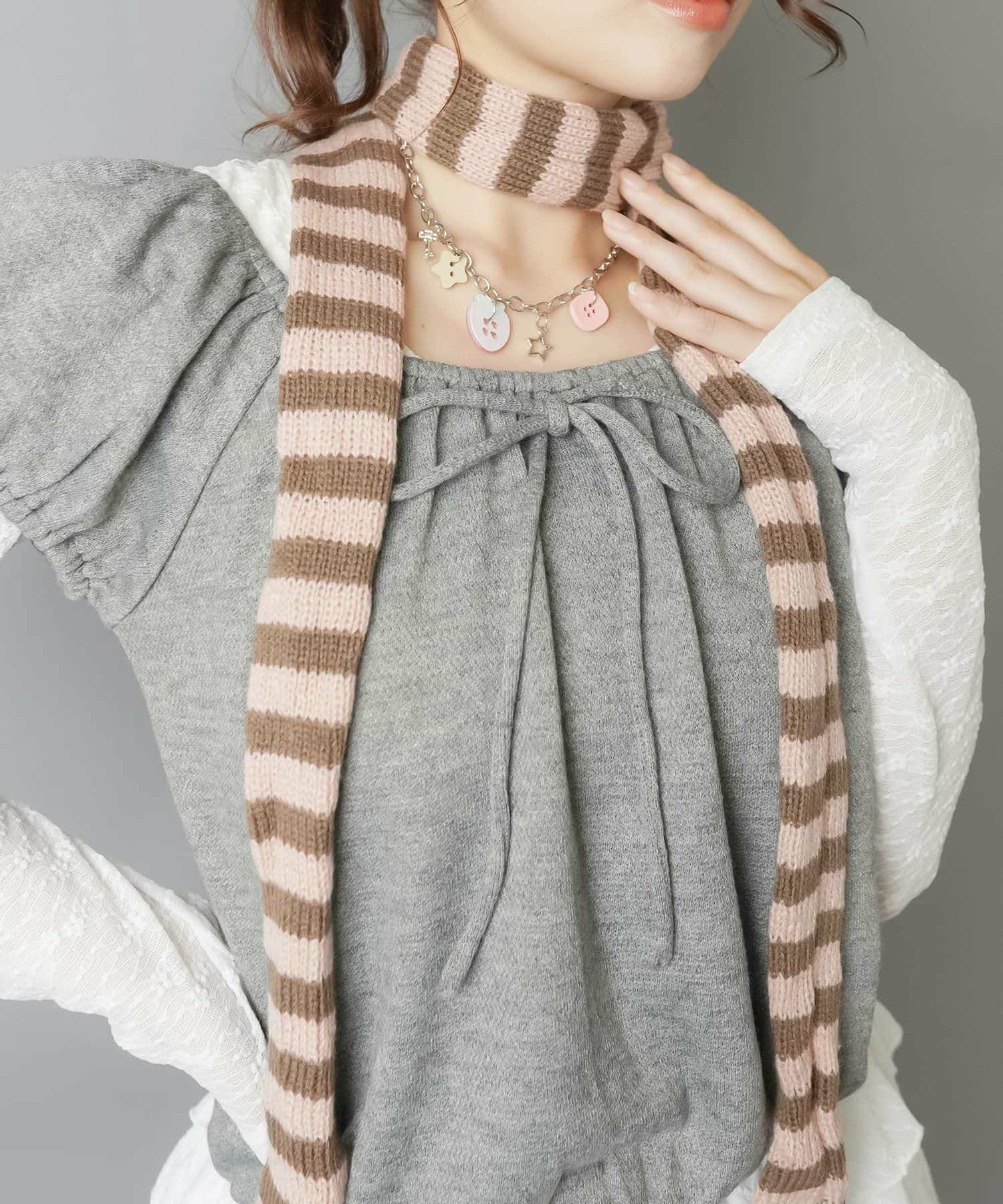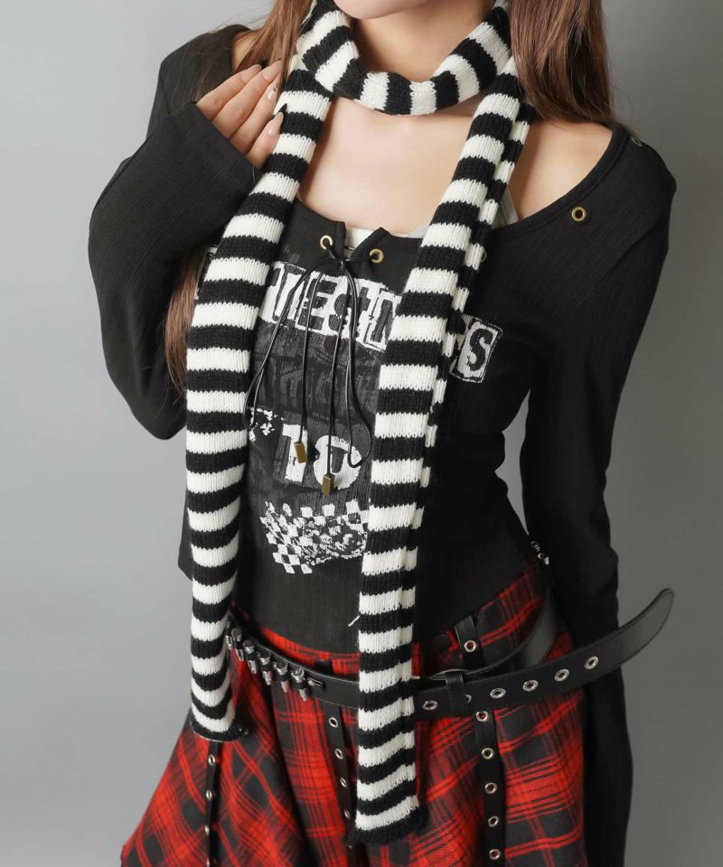 ボーダーニット細スカーフ/#ロマンスパンク