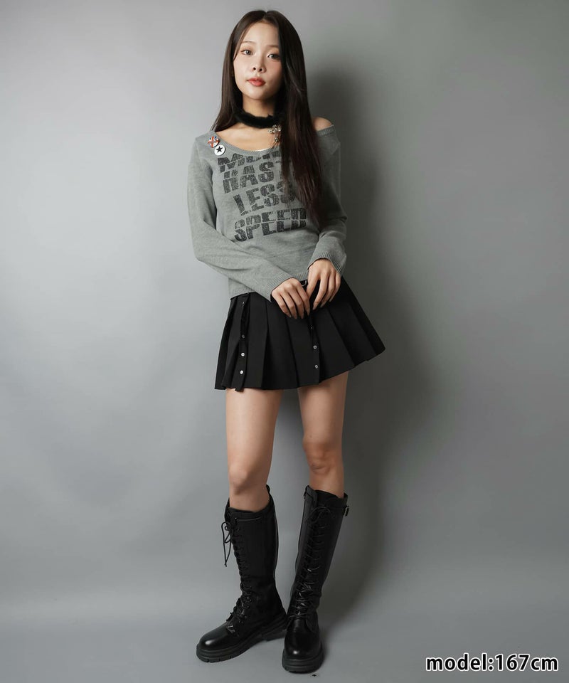 2:スタッズ付きのプリーツスカート