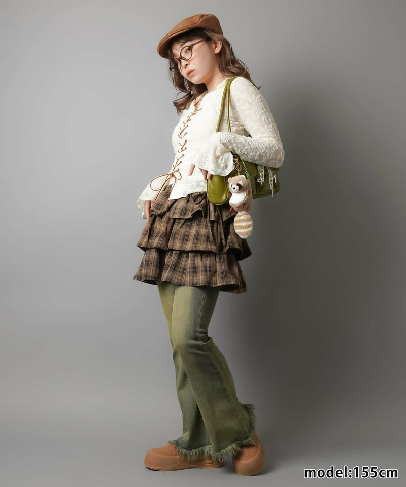 スカートにレギンスやタイツをレイヤードするのもポイント。