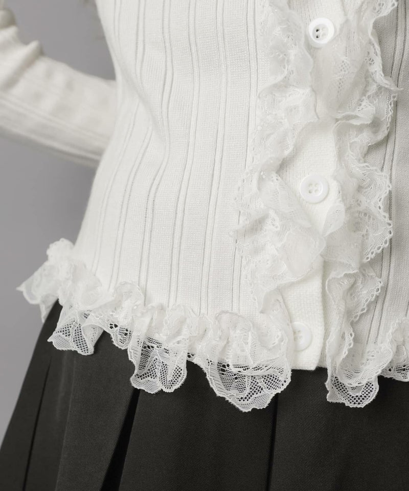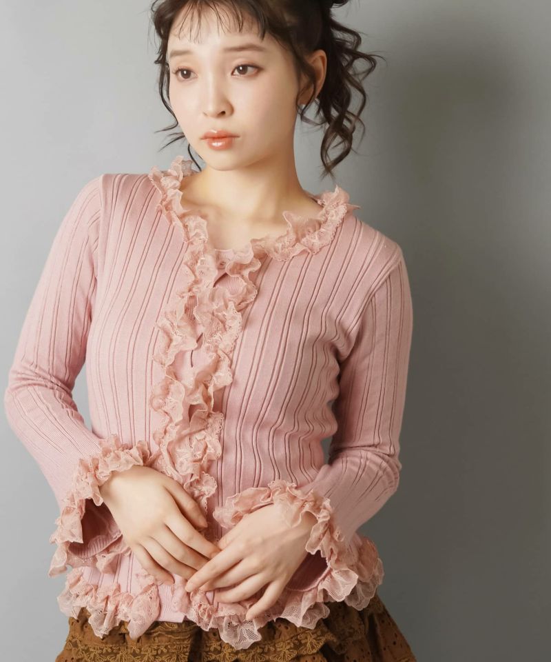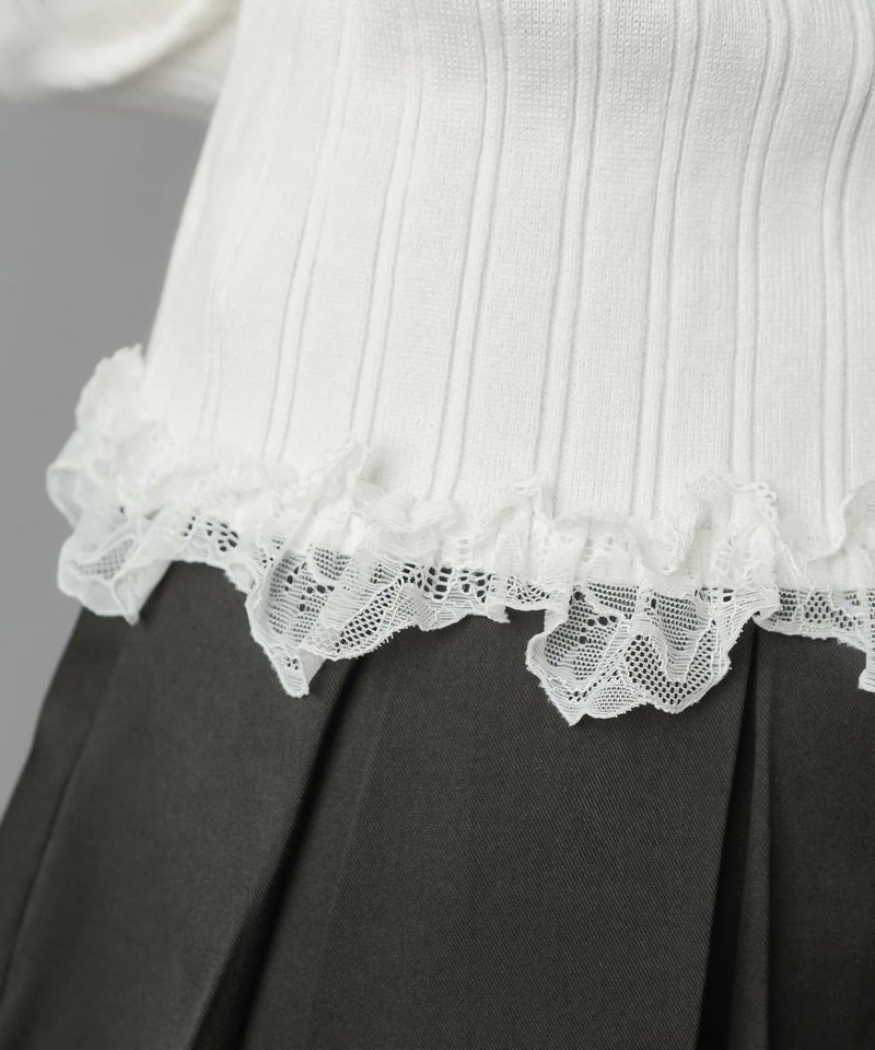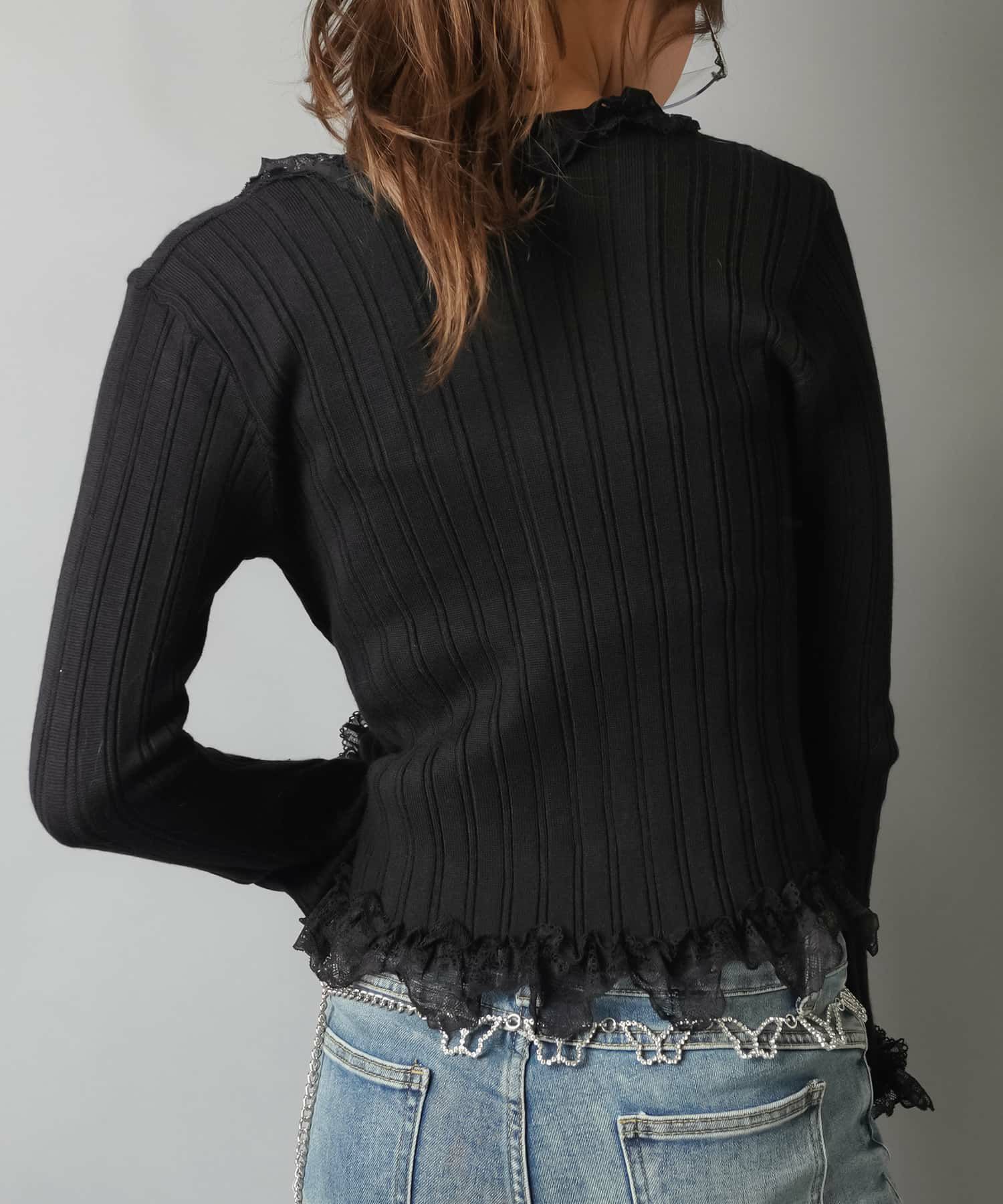 【立体感のあるリブと華やかなレースフリルがフェミニンさをプラス?】