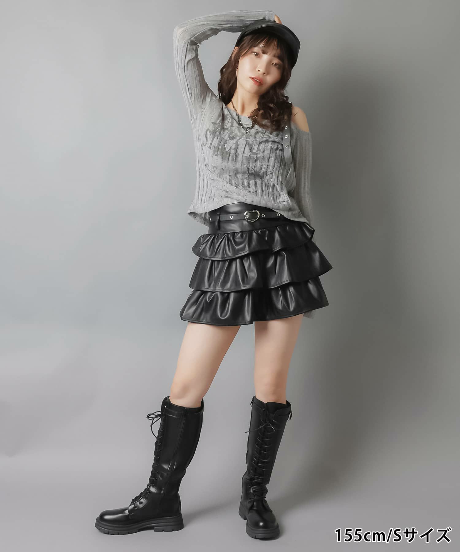 2サイズ展開/合皮フリルティアードミニスカート/ハートベルト付き