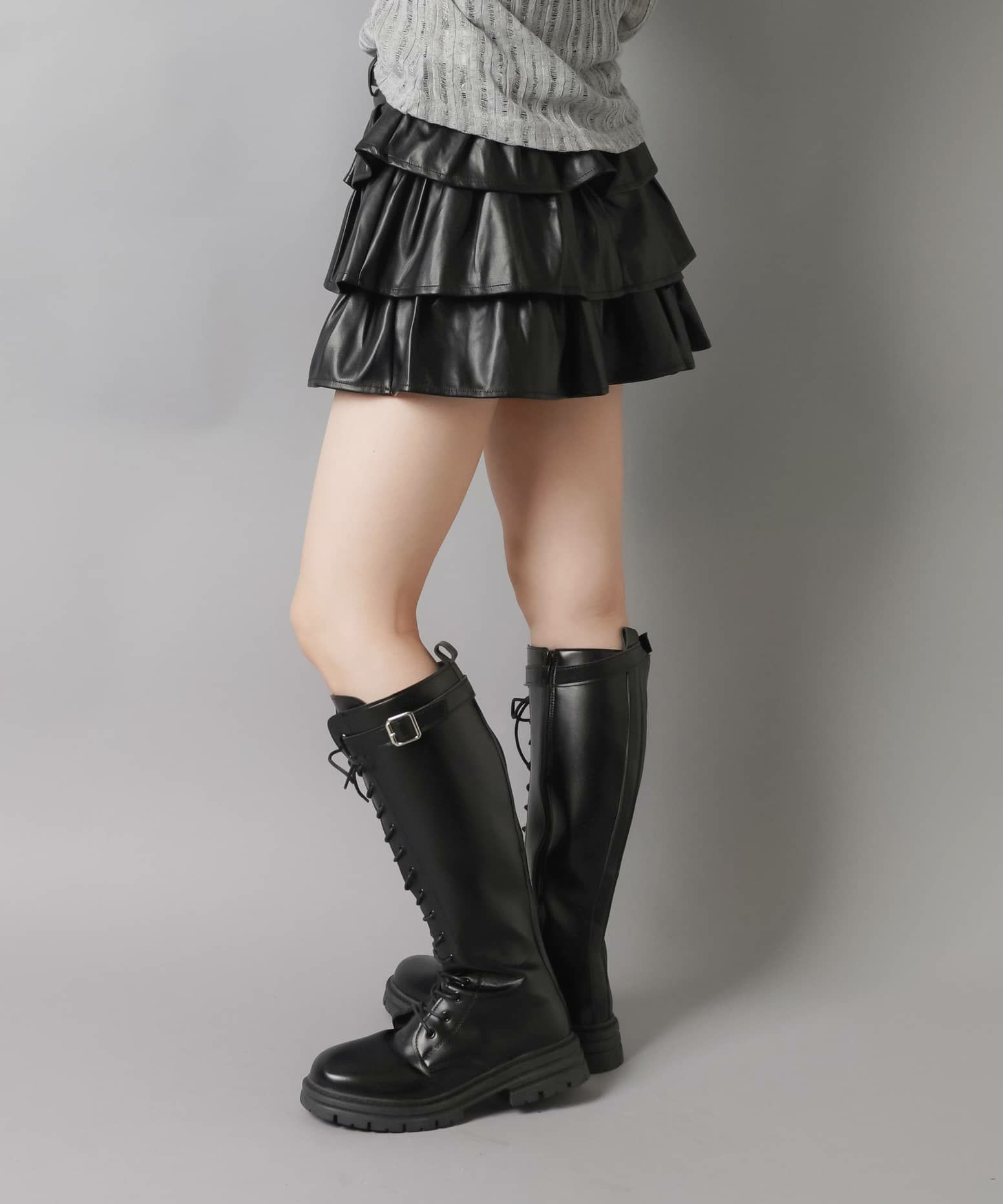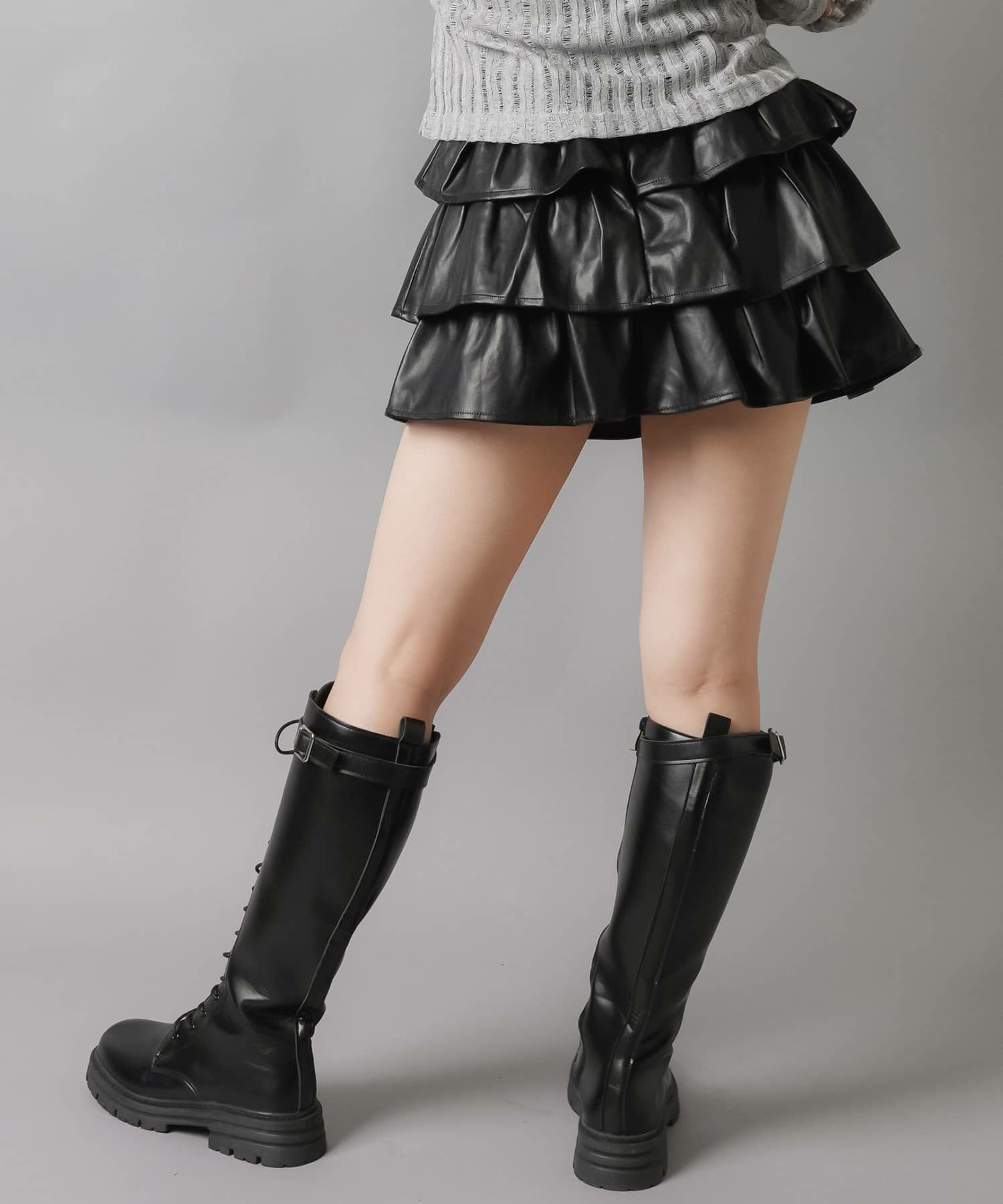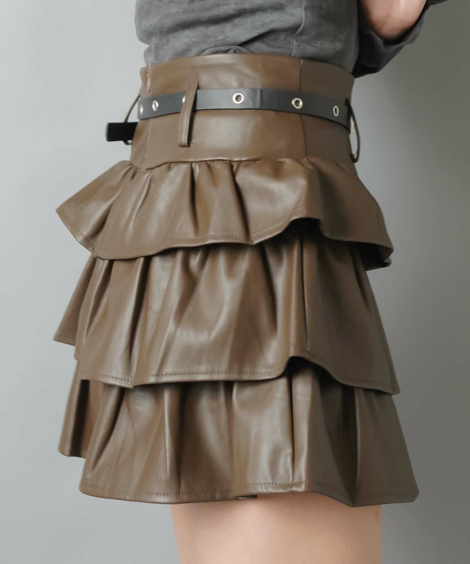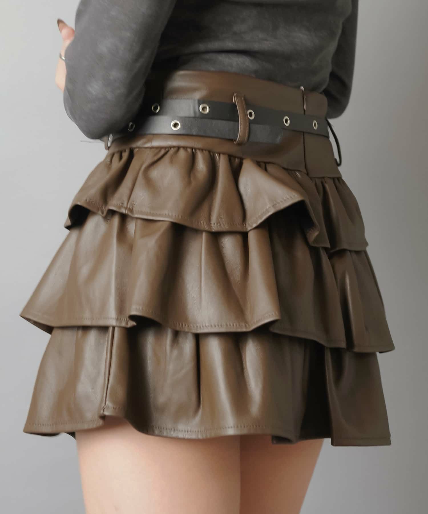 1:ベルト付きのレザーミニスカート