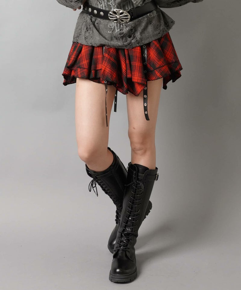 2:フロントのベルトでデザイン性のあるミニスカート