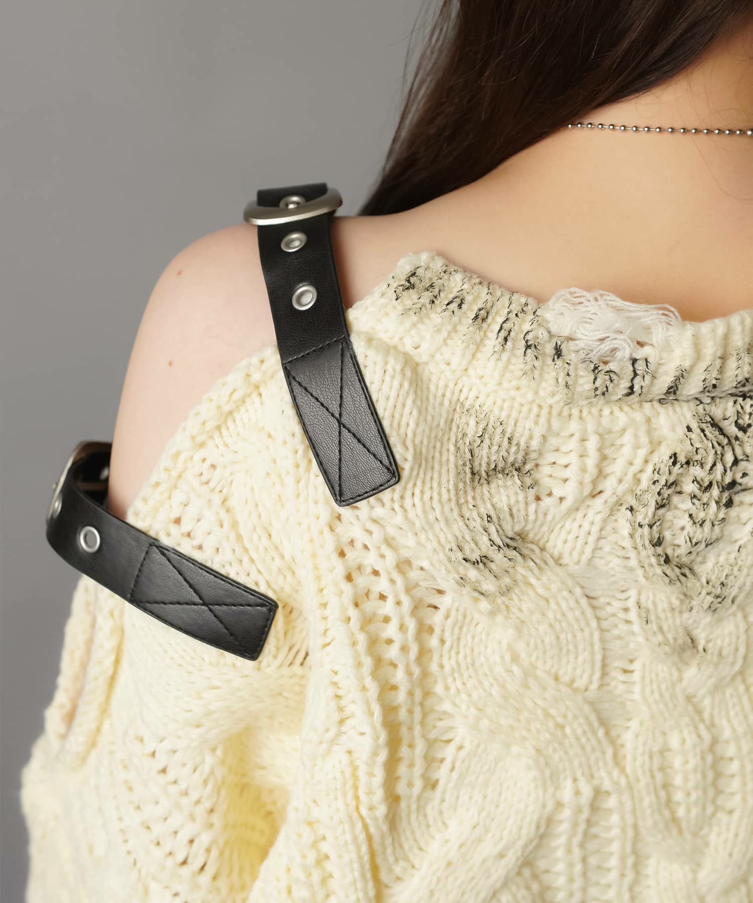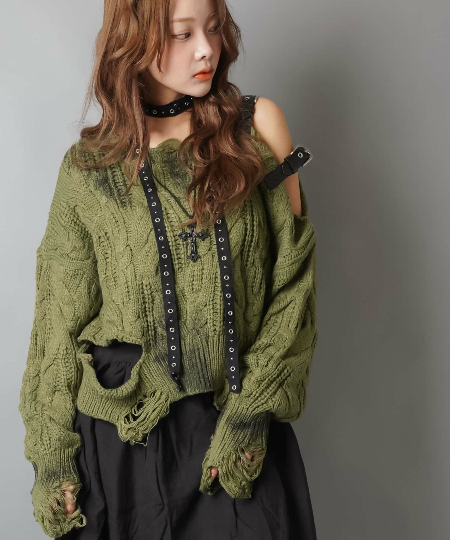【ダメージデザイン+ワンショルでちょっぴり肌見せヘルシーに?】