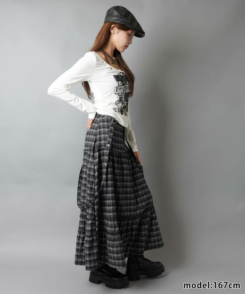サスペンダー付きロングスカート/チェック柄/#ロマンスパンク