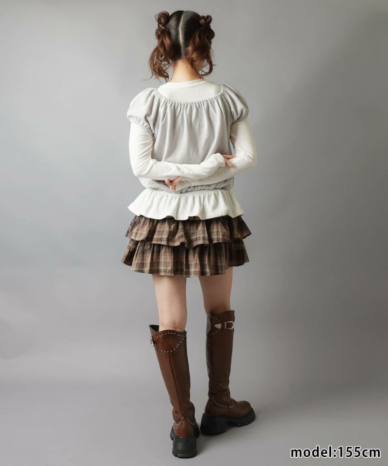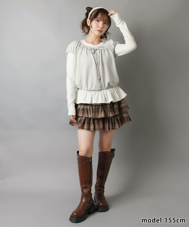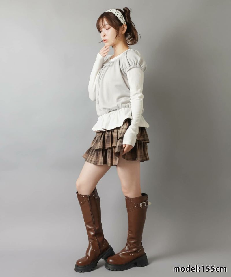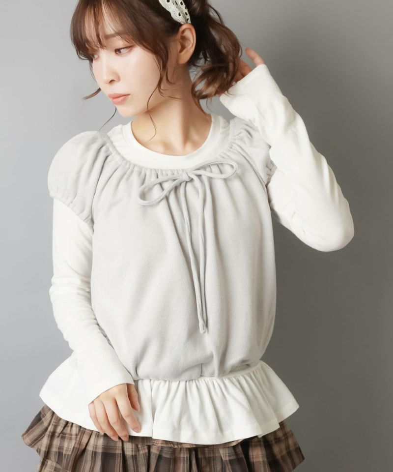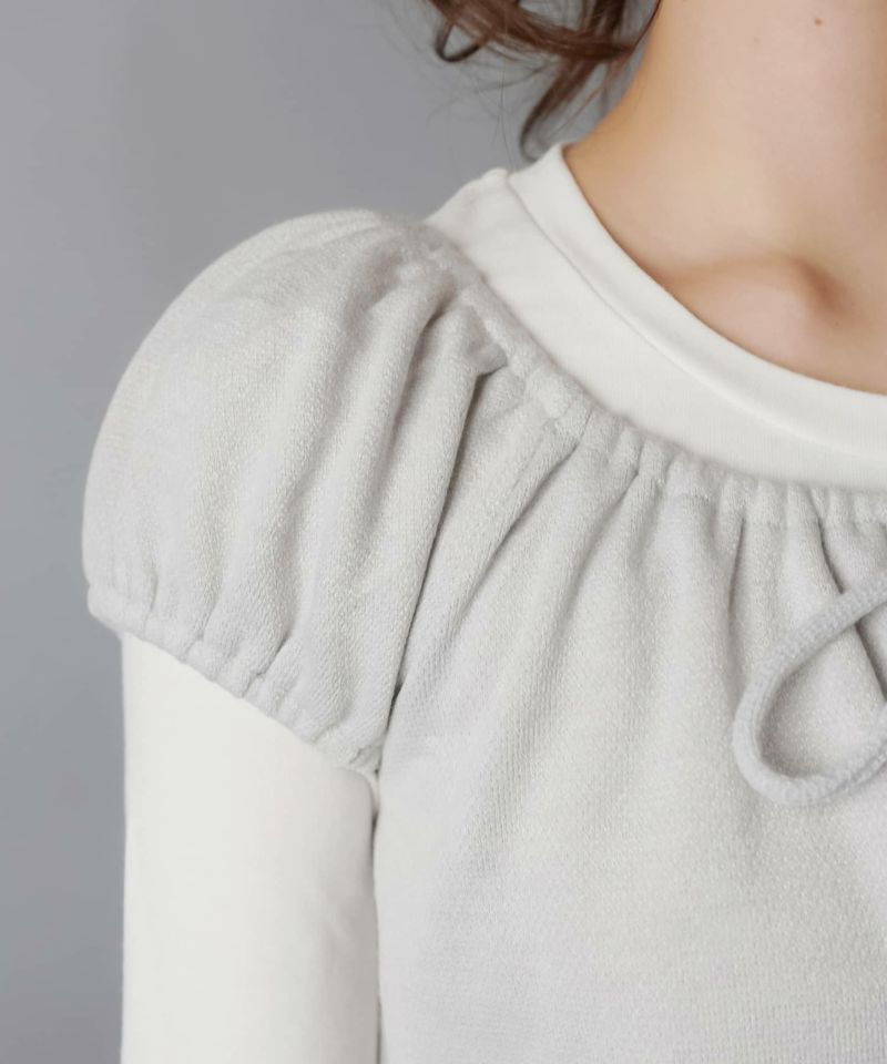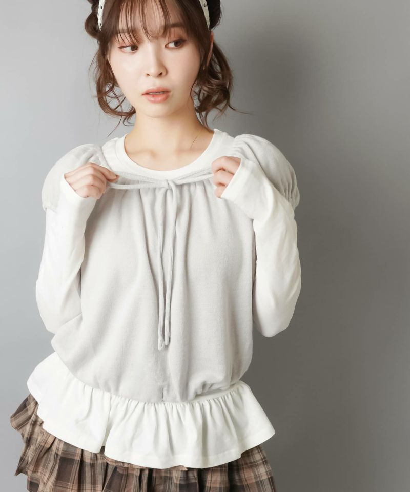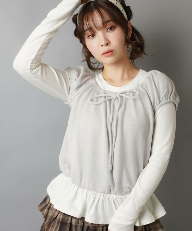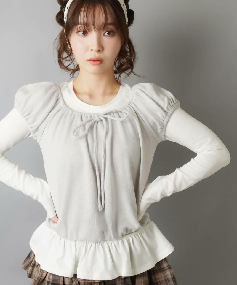長袖カットソー+パフスリーブTシャツセット/リボン/#ロマンスパンク