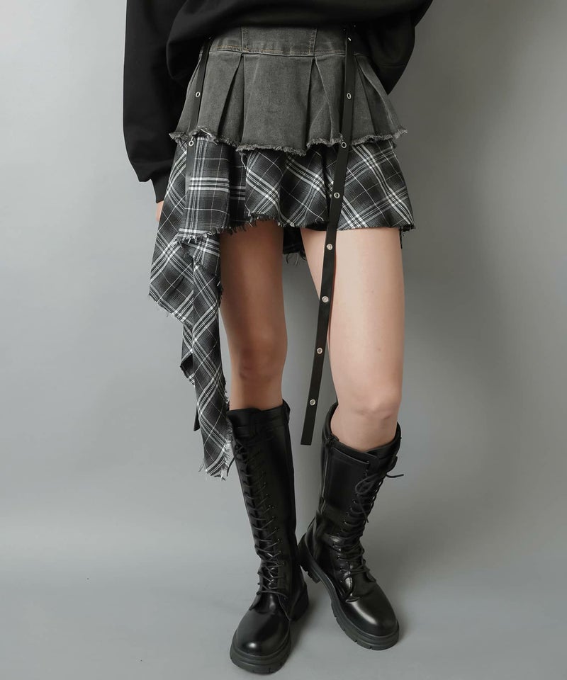 【トレンドのロマンスパンクスタイルを叶えるイレヘムチェック柄ミニスカート】