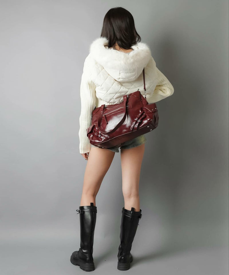 A4サイズ収納可 合皮ハンドバッグ/ショルダーバッグ/サイドハトメ