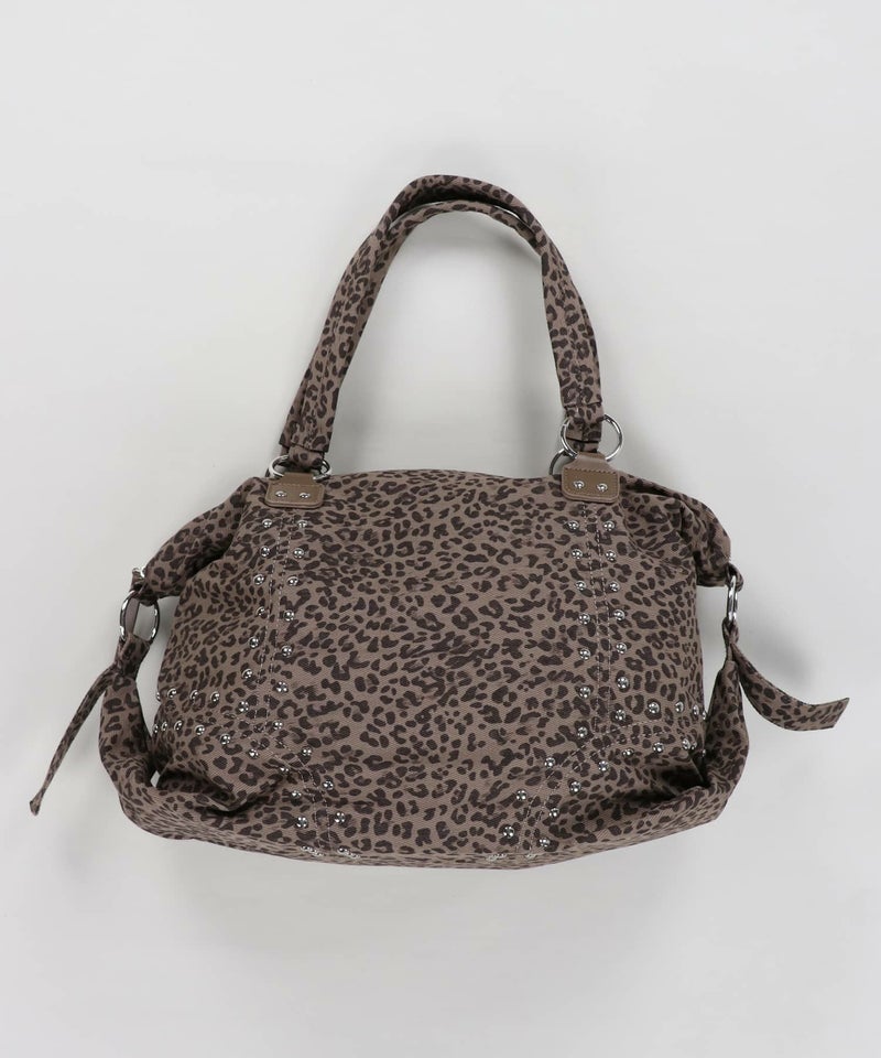 A4サイズ収納可 ヒョウ柄スタッズショルダーバッグ/レオパード/#ロマンスパンク