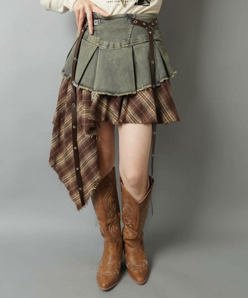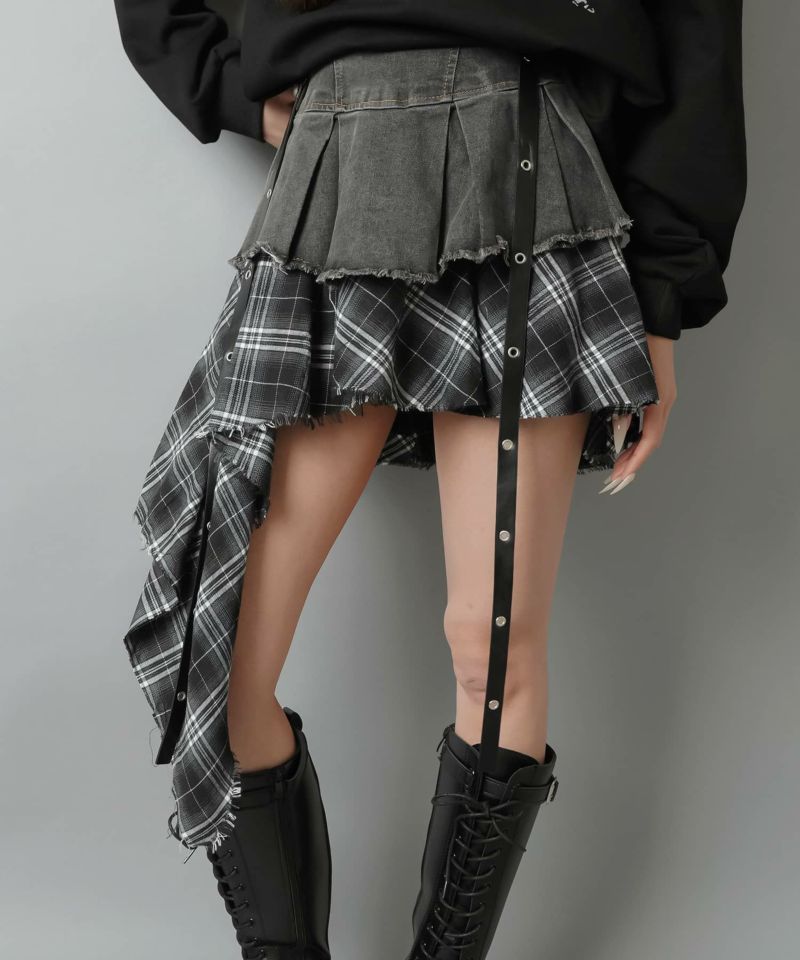【トレンドのロマンスパンクスタイルを叶えるイレヘムチェック柄ミニスカート】