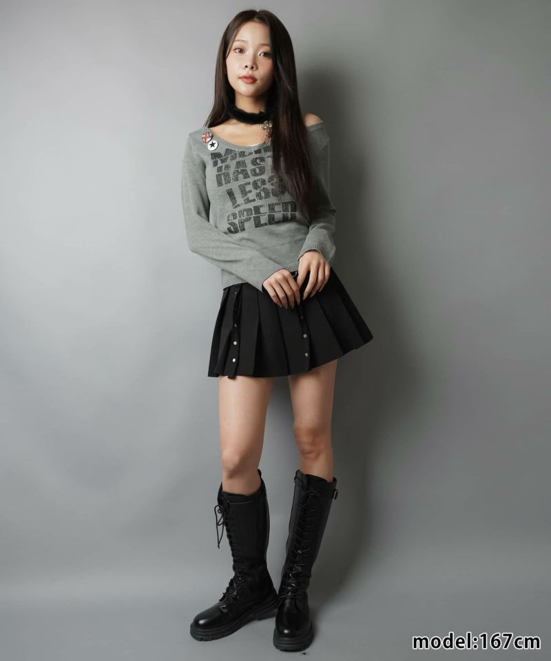 2:スタッズ付きのプリーツスカート