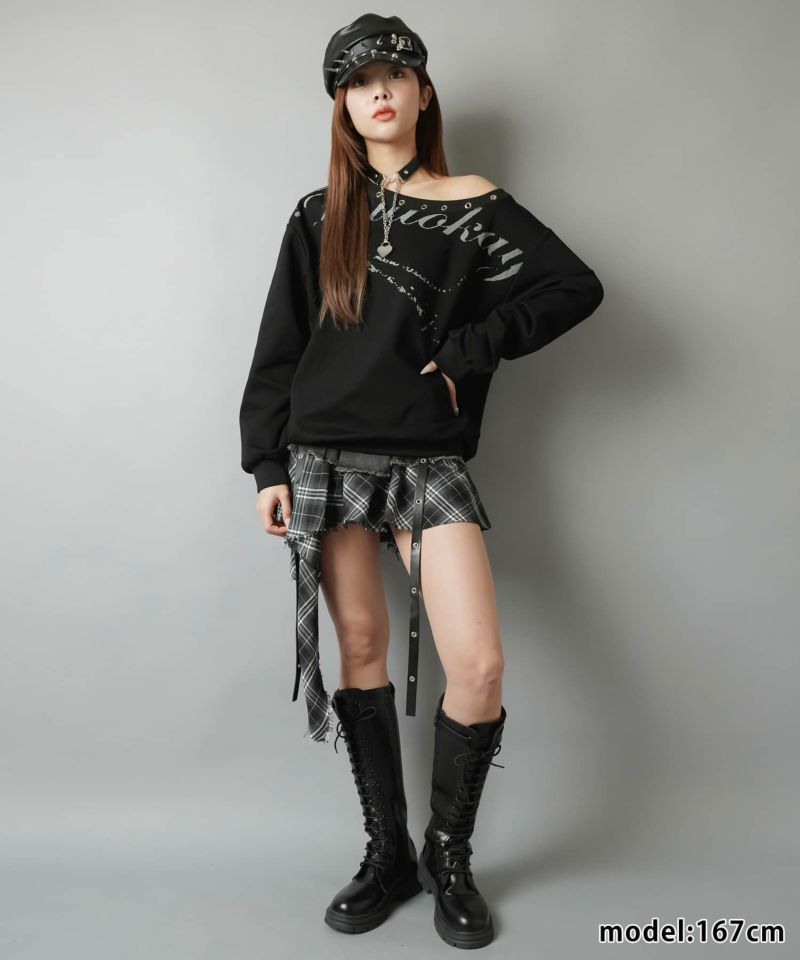 【トレンドのロマンスパンクスタイルを叶えるイレヘムチェック柄ミニスカート】