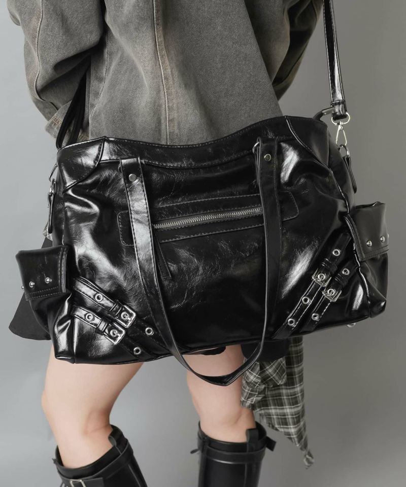 A4サイズ収納可 合皮ハンドバッグ/ショルダーバッグ/サイドハトメ