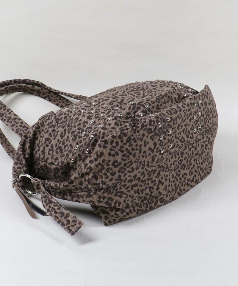 A4サイズ収納可 ヒョウ柄スタッズショルダーバッグ/レオパード/#ロマンスパンク