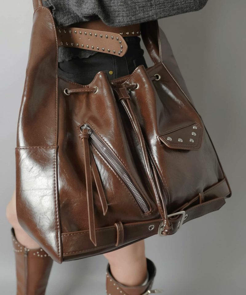 A4サイズ収納可 合皮ショルダーバッグ/スタッズベルト/#ロマンスパンク