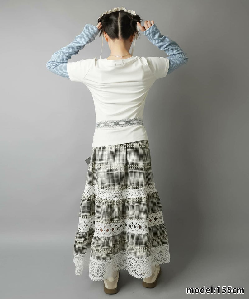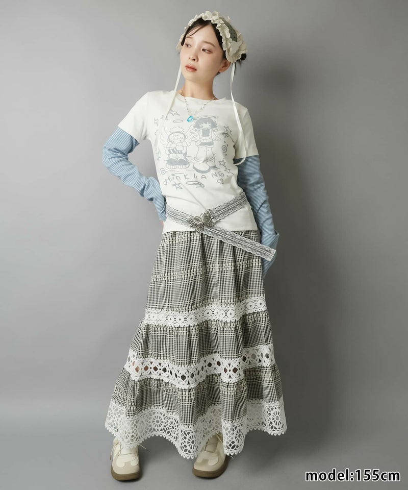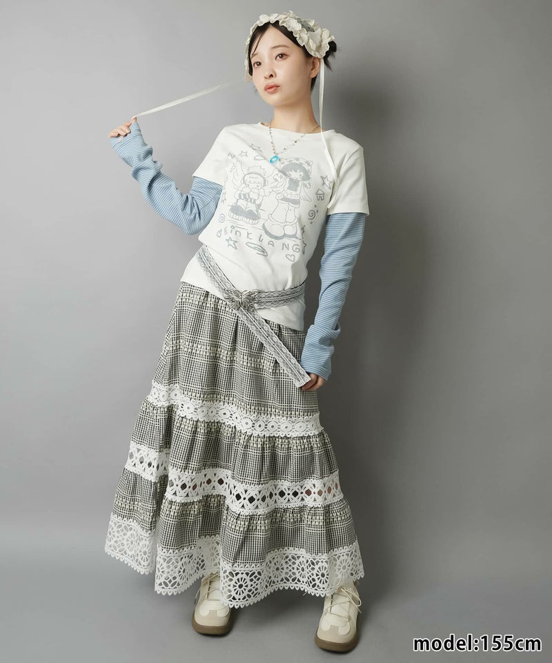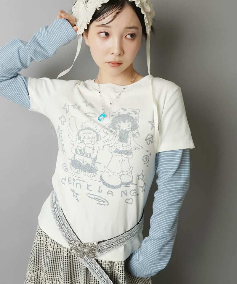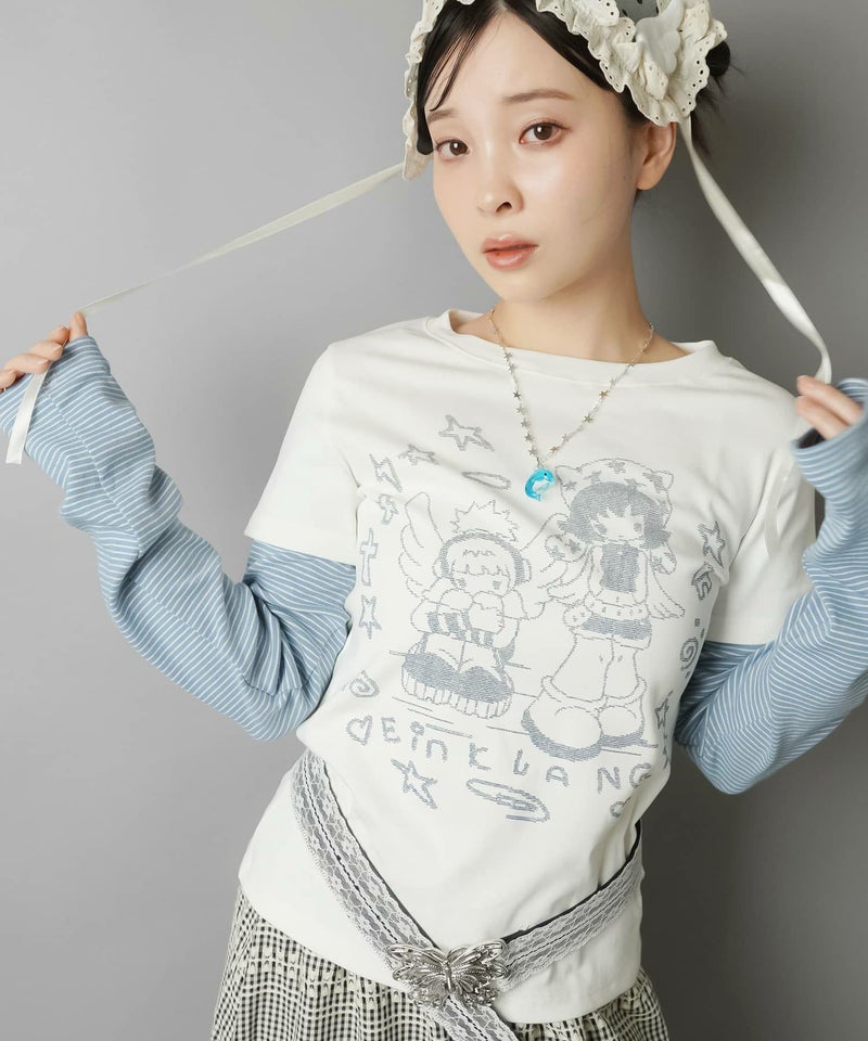 レイヤード風長袖カットソー/ボーダー/アスキーアート/#ドリームコア