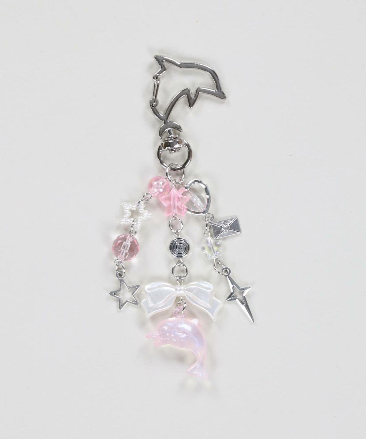 ビーズキーホルダー/イルカリボン/#平成女児<メール便対応>