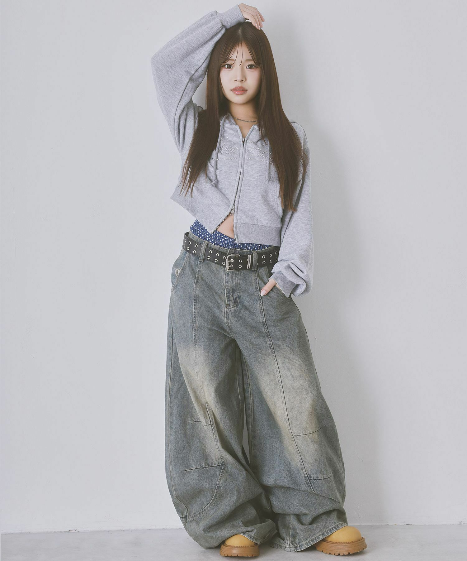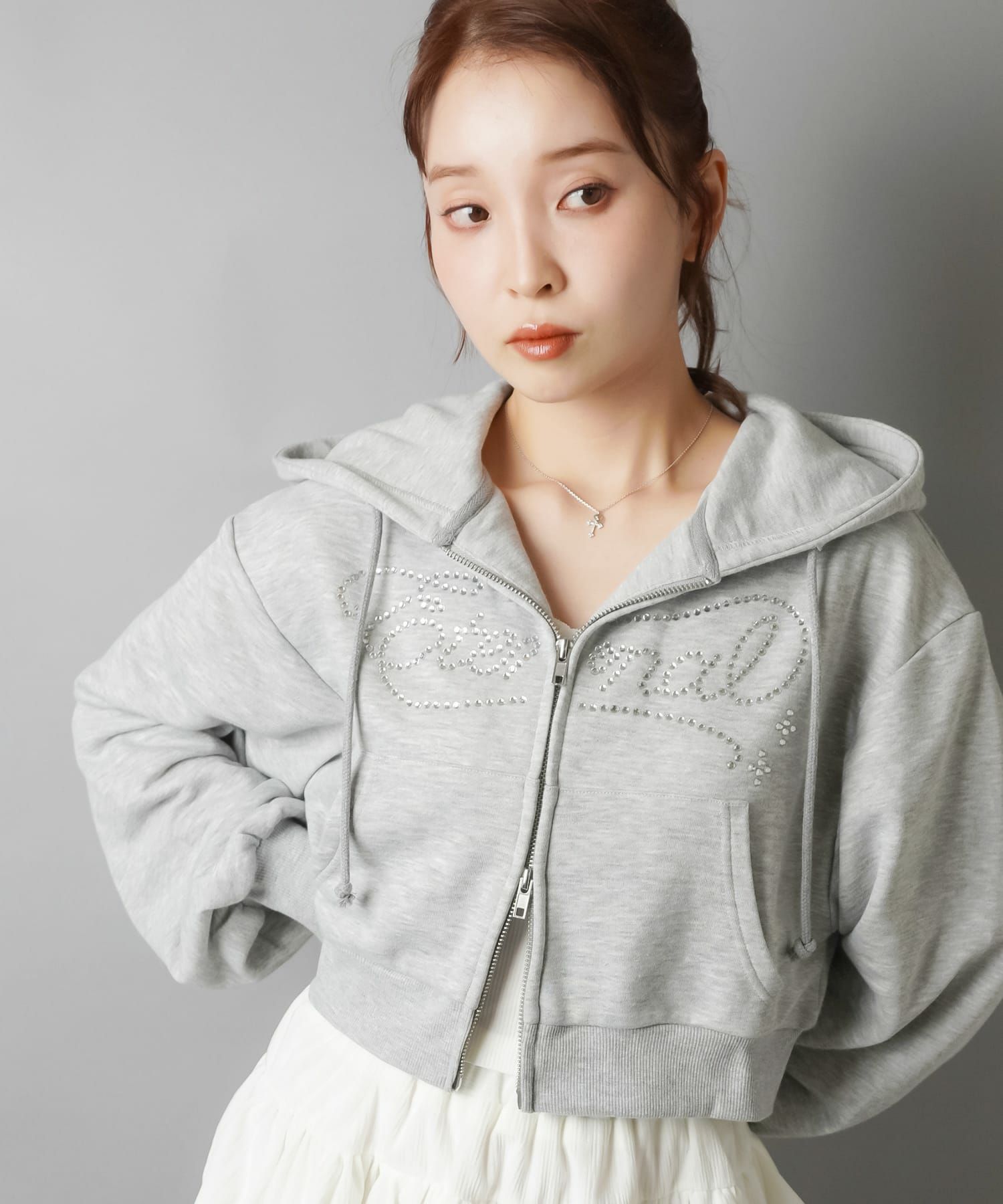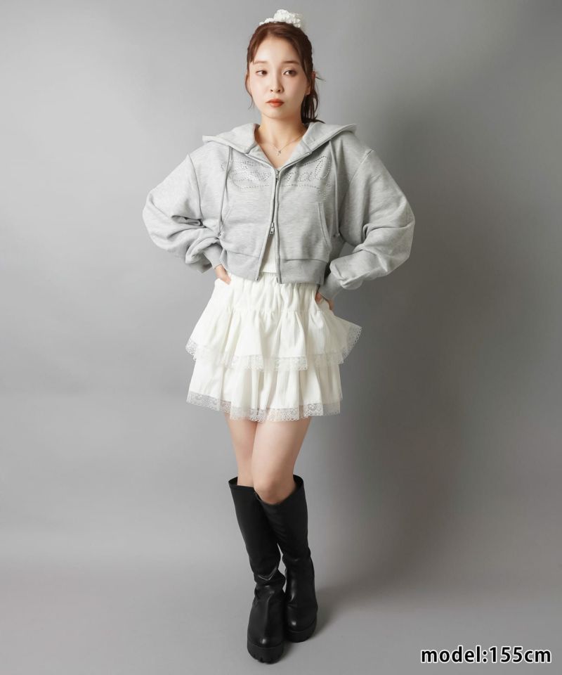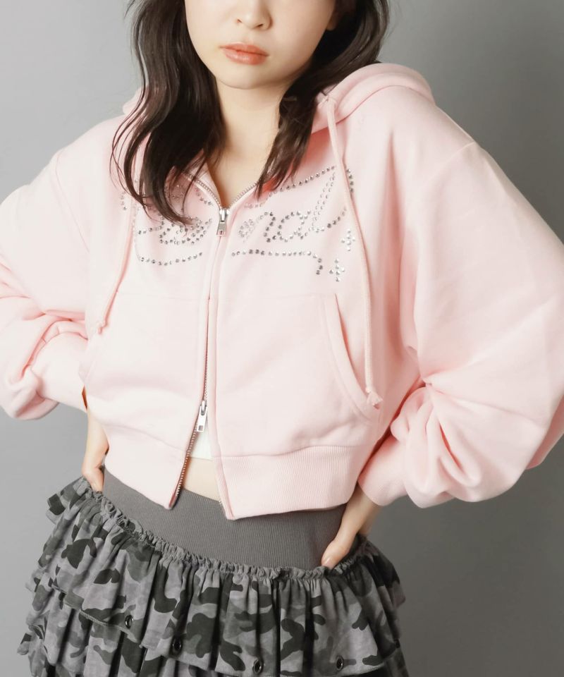 【キラキラのラインストーンロゴが可愛いWジップショートパーカー】