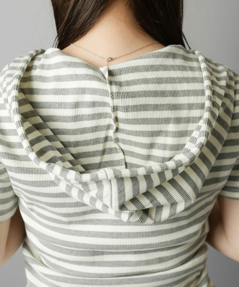 【86%OFF】半袖パーカーカットソー/ボーダー