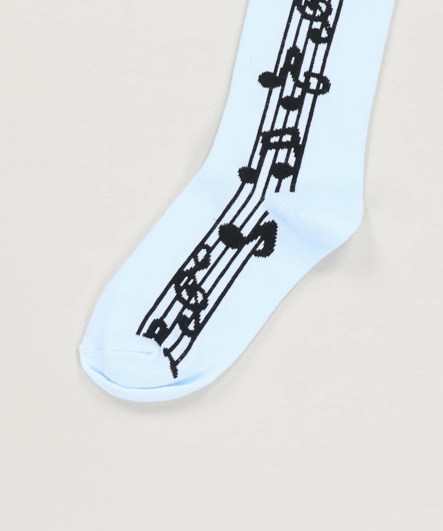 【34%OFF】コットンハイソックス/音符/#ウィッシュコア