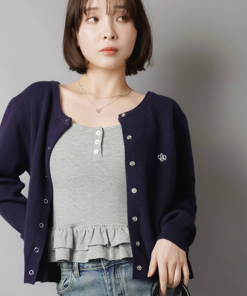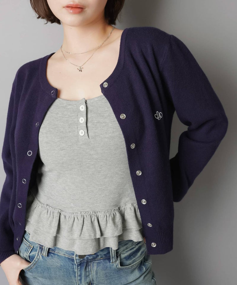 1:シンプルなワンポイント刺繍のスナップボタンカーディガン