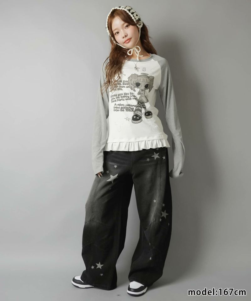 1:裾のフリルがポイント!ガーリーなドリームコアコーデにおすすめ♡