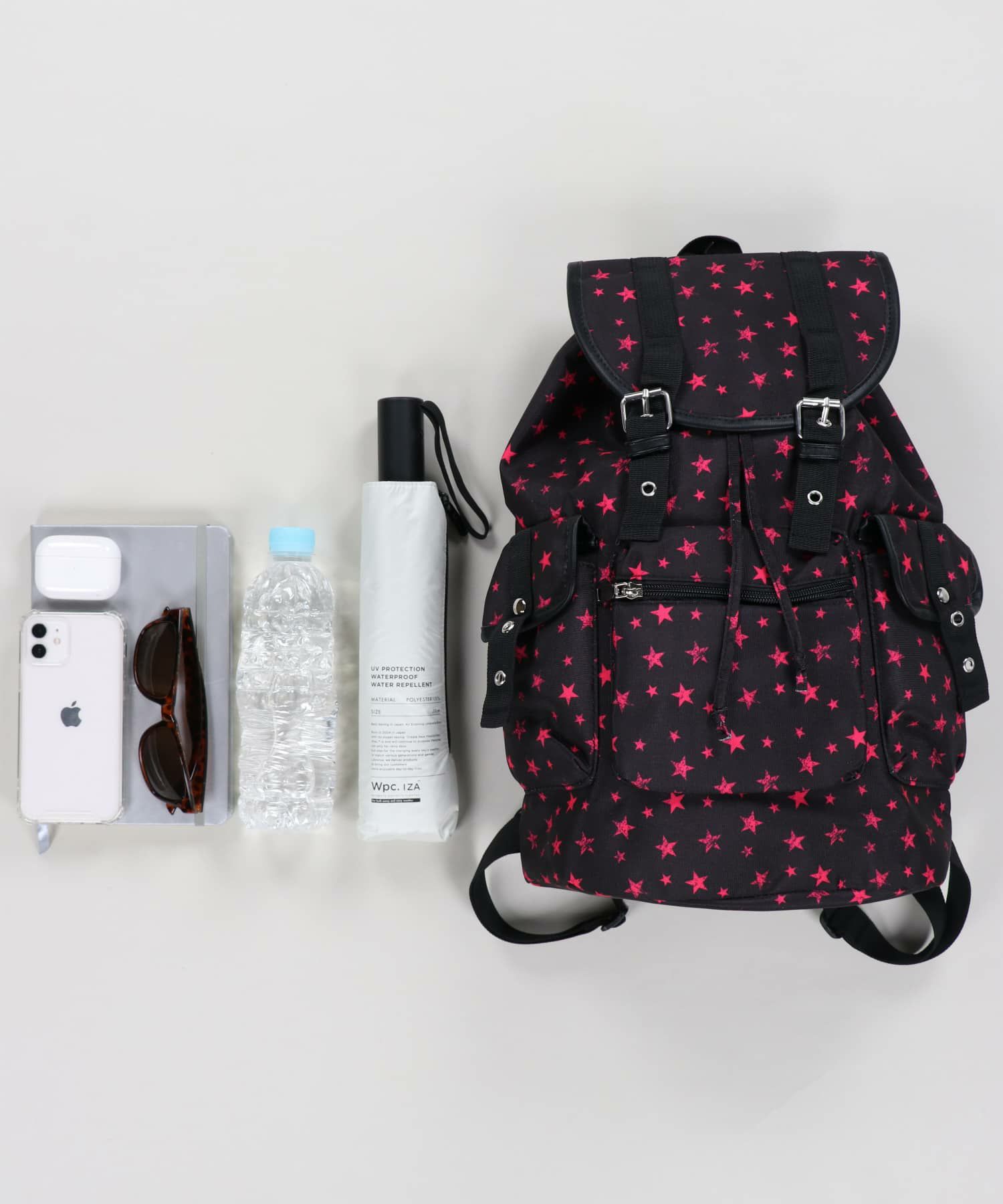 シンプルな無地ブラックとスター総柄のピンクとブルーの3色展開。