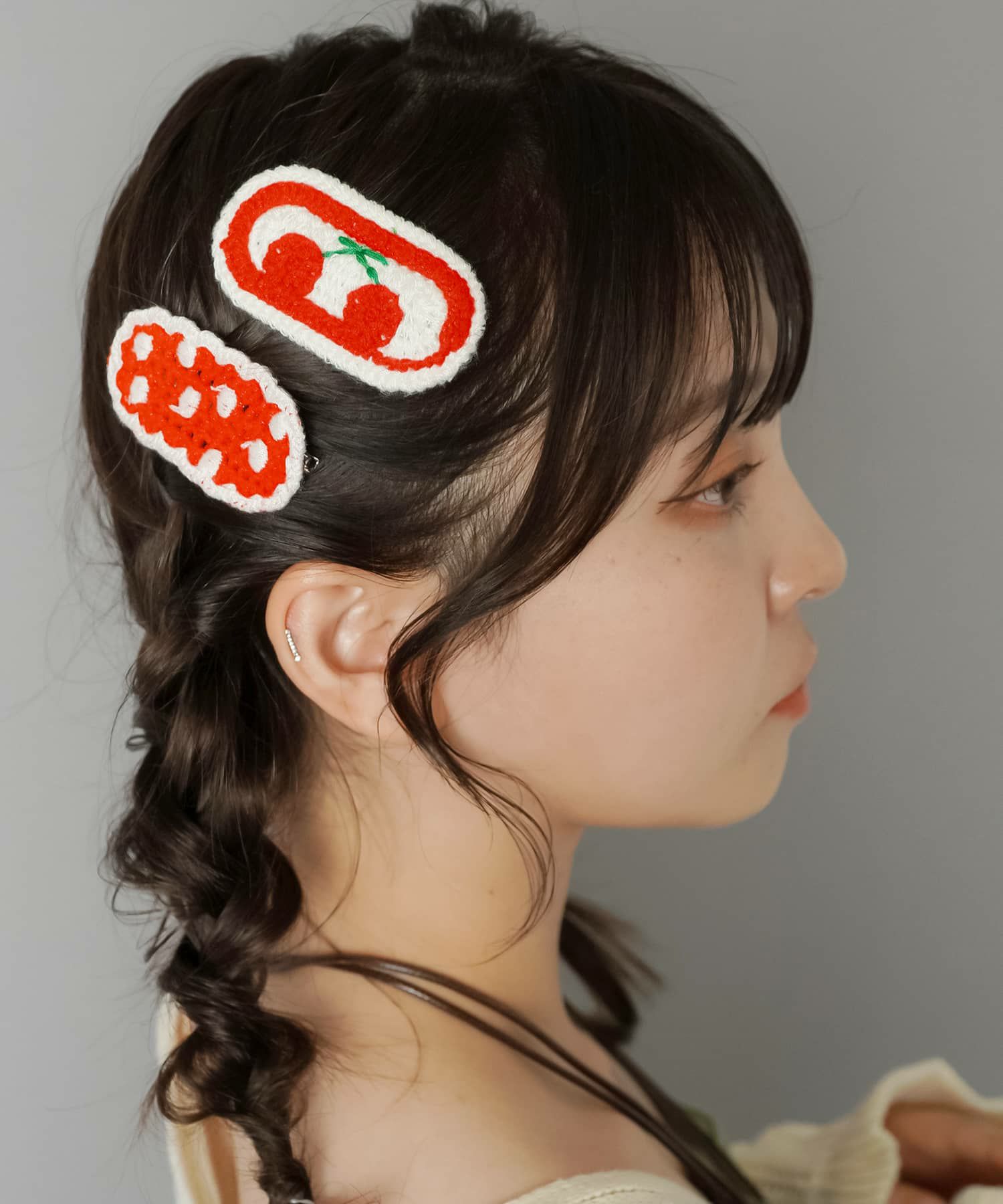 【63%OFF】ニットヘアクリップ/チェリー/ヘアピン/2個セット#NEO森ガール<メール便対応>