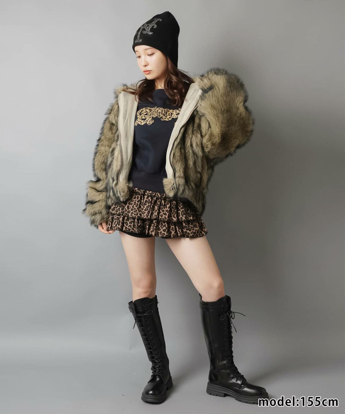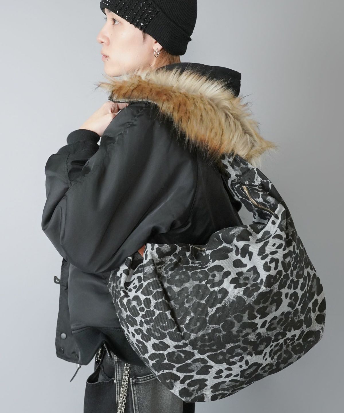 マフラーにもなる🐾 【75%OFF】耳付きフェイクファーアニマルキャップ/ロングポケット/ヒョウ/ウルフ/#平成ギャル
